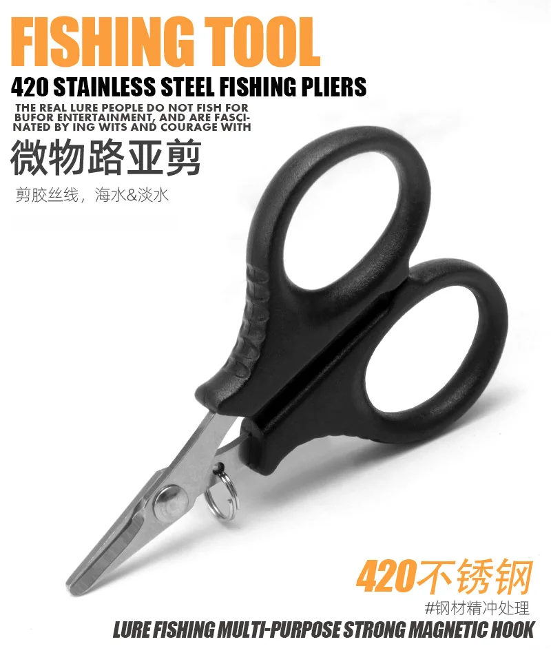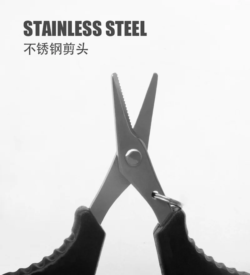 Tijeras de hilo de pescar de acero inoxidable, tijeras de hilo de pescar de PE multifuncionales, tijeras pequeñas con dientes para pesca al aire libre
