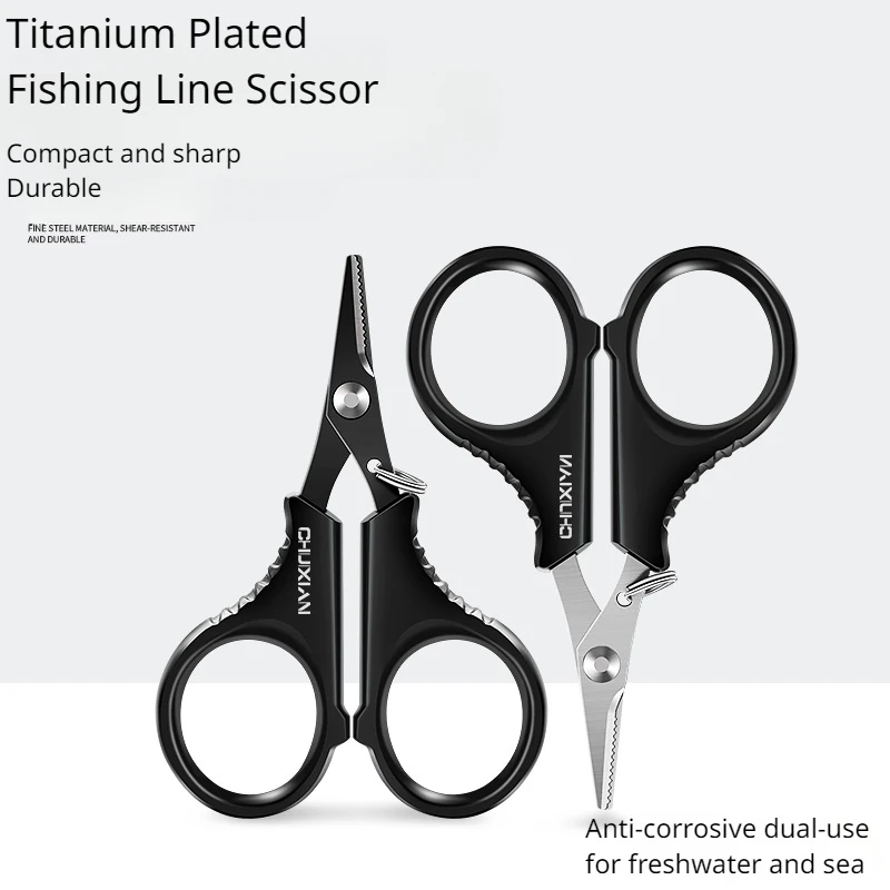 Tijeras pequeñas de pesca chapadas en titanio, pesca fuerte atada al caballo, línea de PE, piel de plomo, Mini tijeras de pesca multifuncionales especiales