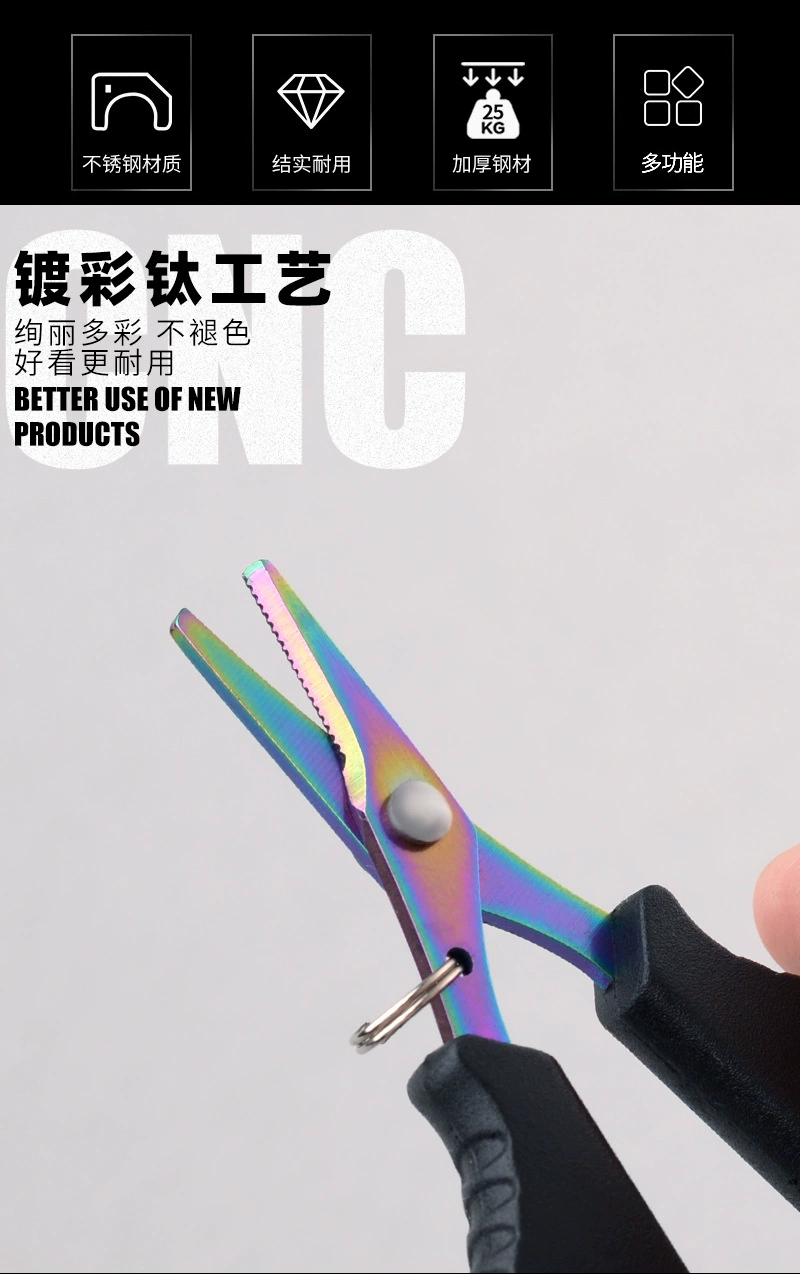 Tijeras de pesca, alambre trenzado de PE de acero inoxidable, hebilla de montañismo portátil, accesorios de alicates para equipo de pesca al aire libre
