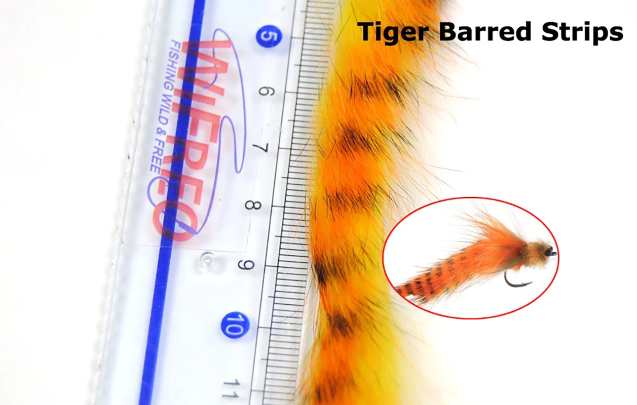 Tiras Zonker de conejo de corte Vertical de 4mm, 6 uds., naranja, azul, Tigre, Color prohibido, Material para atar moscas, conejito, Muddler/garras de cangrejo