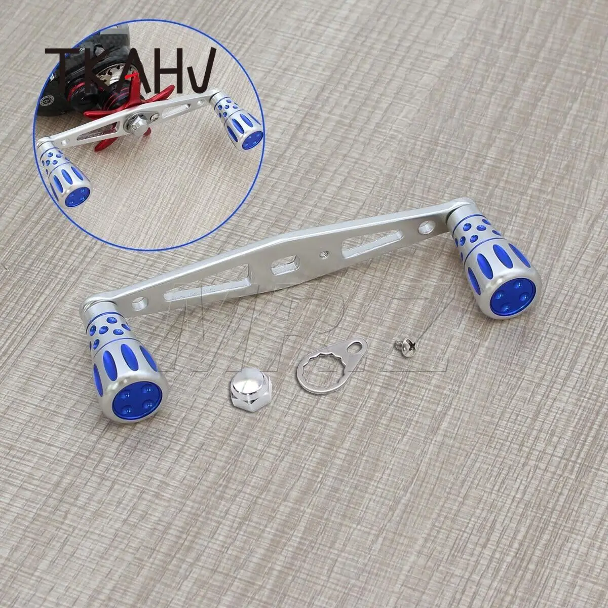Carrete de pesca para Baitcasting, plateado y azul, 4", mango azul para Abu Daiwa Shimano, carrete de tambor recto de perfil bajo