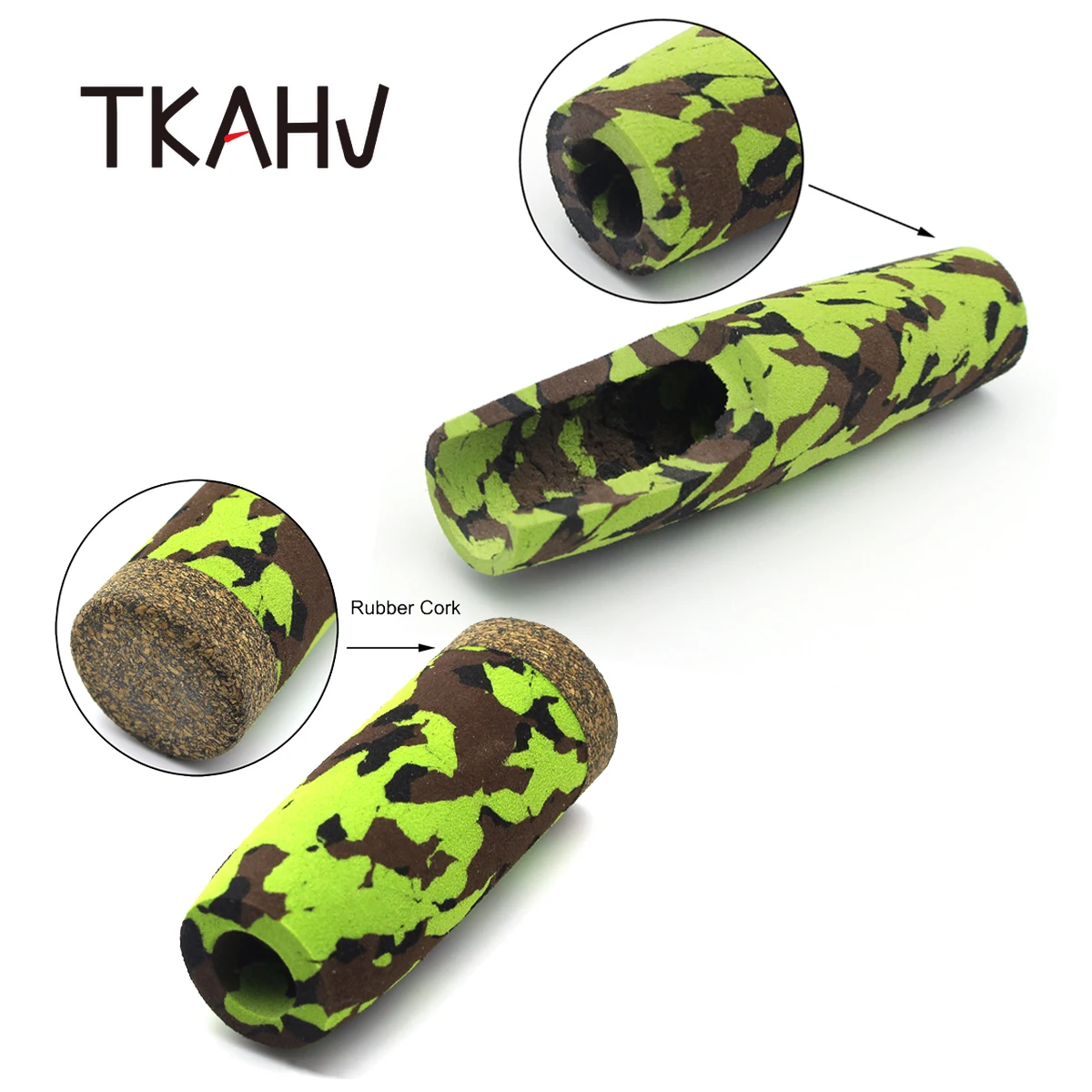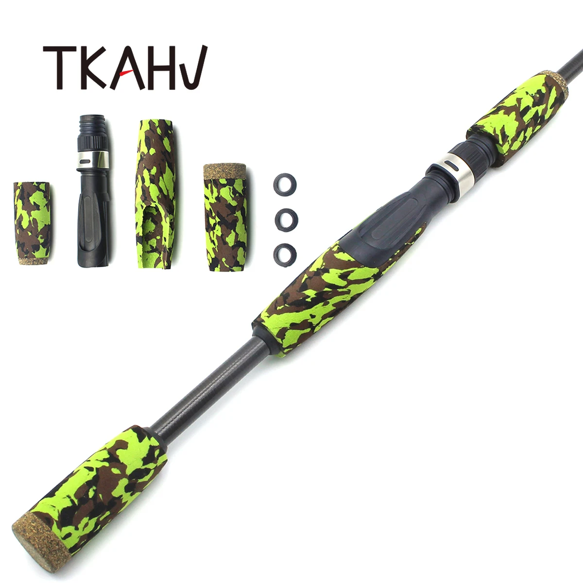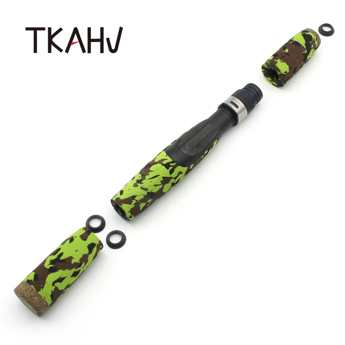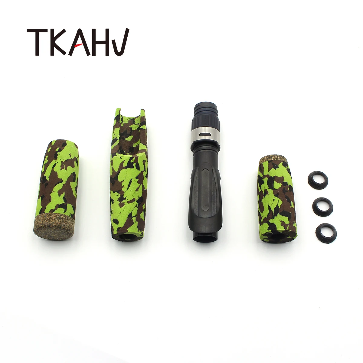 TKAHV verde CAMO EVA espuma Spinning caña de pescar mango Kit Split Grip 16 # IPS asiento de carrete similar para reparación de construcción de postes