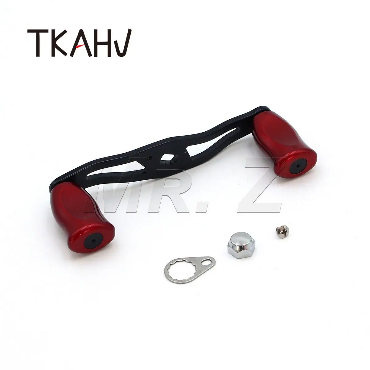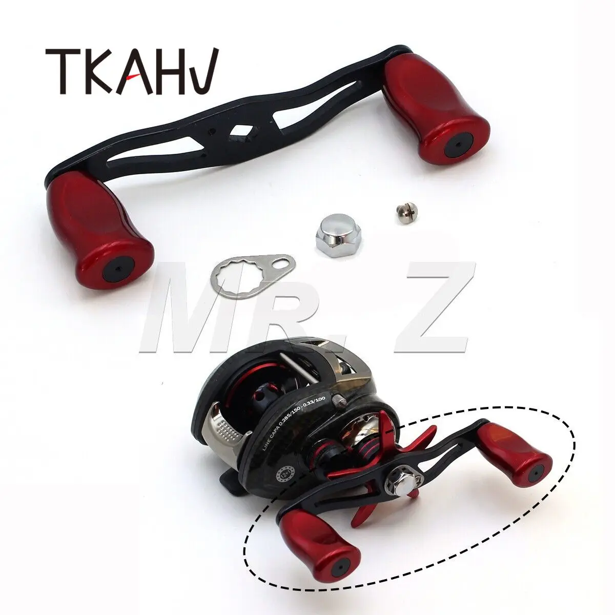 Mango de carrete de pesca Baitcasting con curva de 95 mm TKAHV para Abu Revo S Daiwa Shimano Baitcaster de perfil bajo negro y rojo
