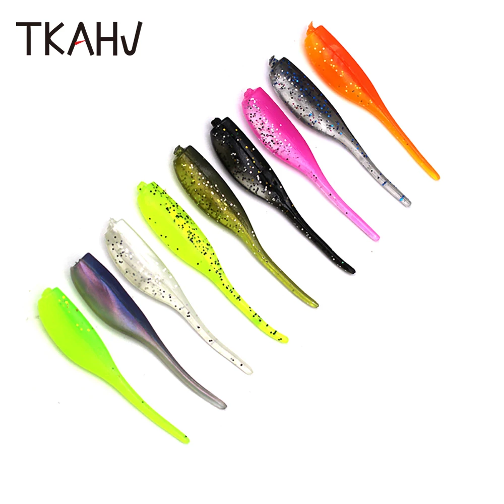 Tkakv 30 piezas 48mm Mini señuelo de pesca de roca suave delineador de silicona cebo de gusano Artificial Wobblers carpa bajo Jigging silicona Swimbait