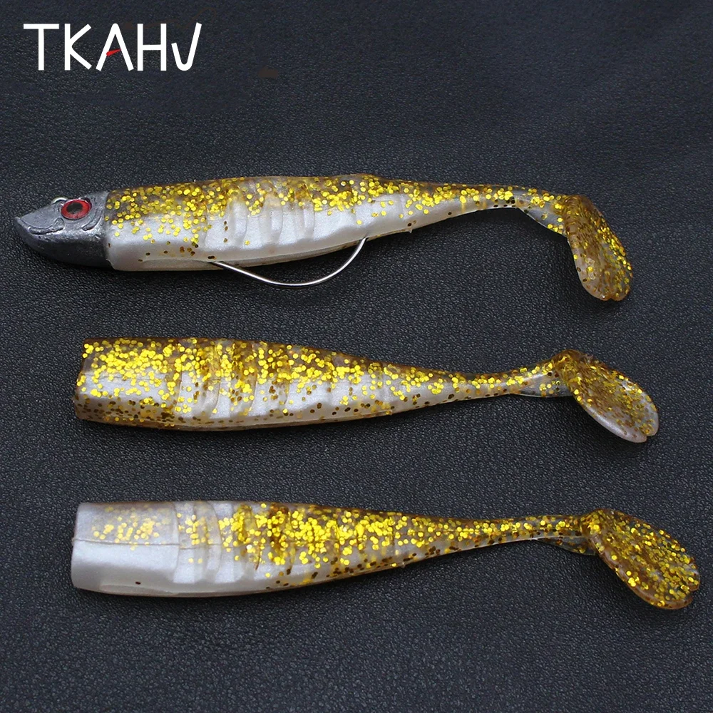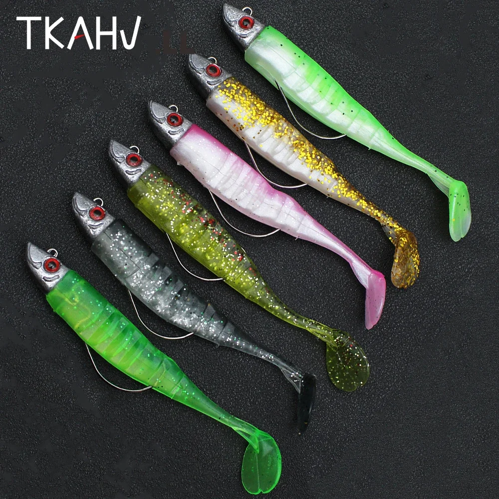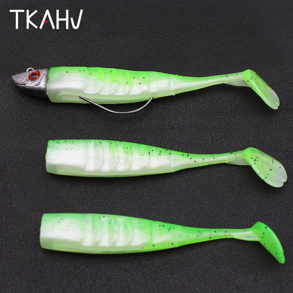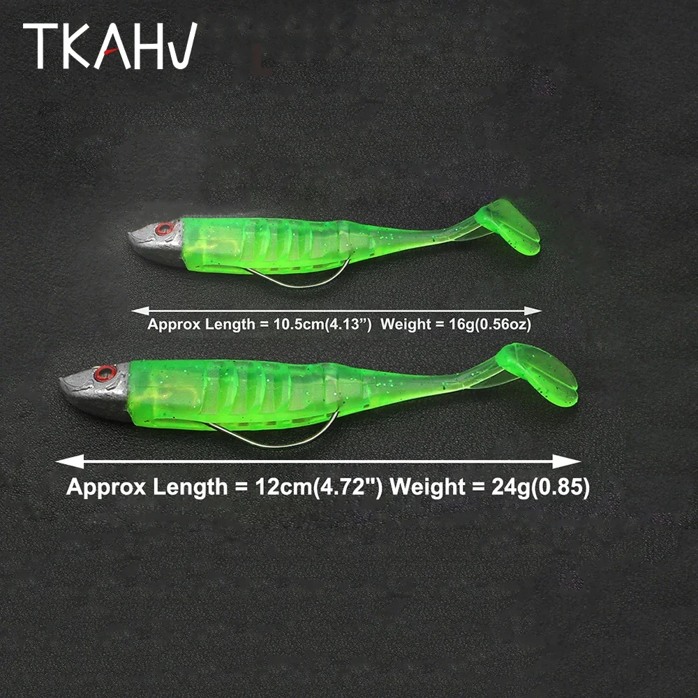 TKAHV, señuelo de pesca con cabeza de plantilla de sábalo, cola en T, cebo de gusano suave, cebo de silicona para pececillo, 105mm, 120mm