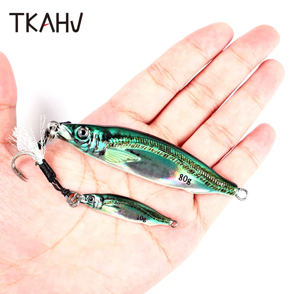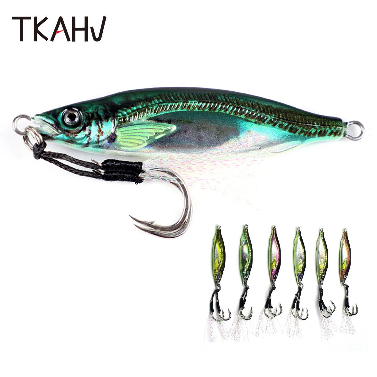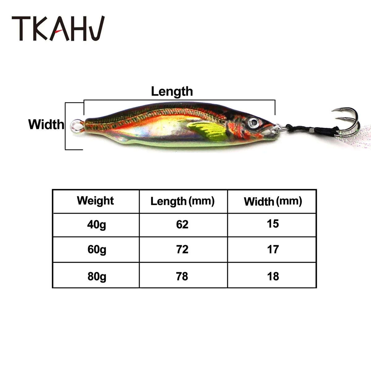 TKAHV 40g 60g 80g Metal Jig Vivid 3D Print Señuelo de pesca láser Anzuelos dobles Trucha dura Fundido Cuchara lenta Cebo artificial de agua salada