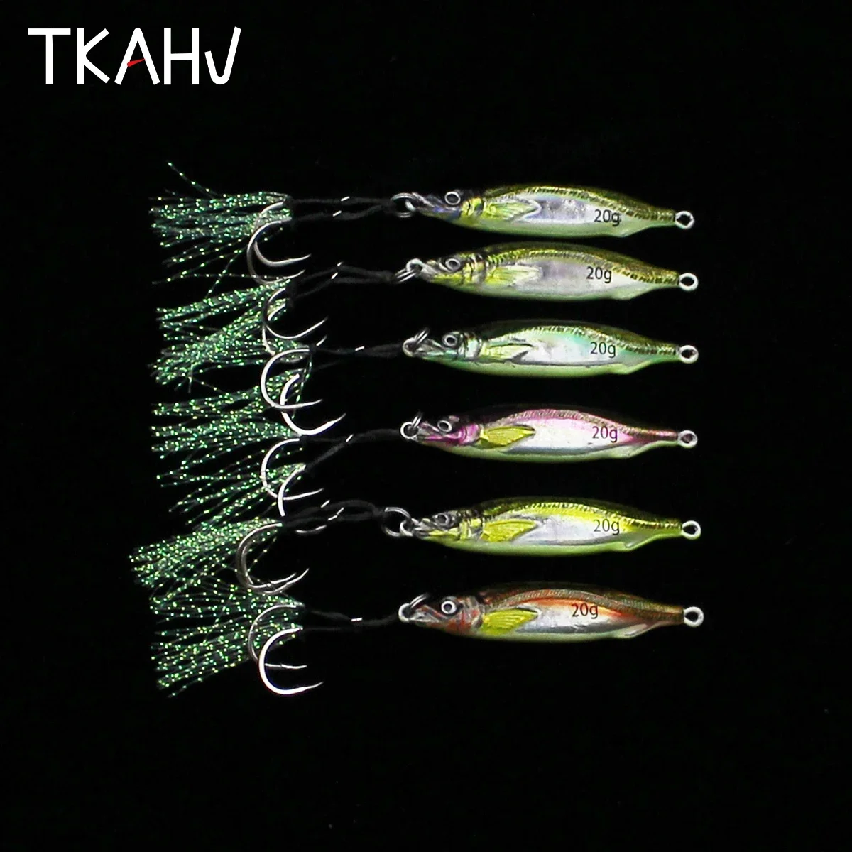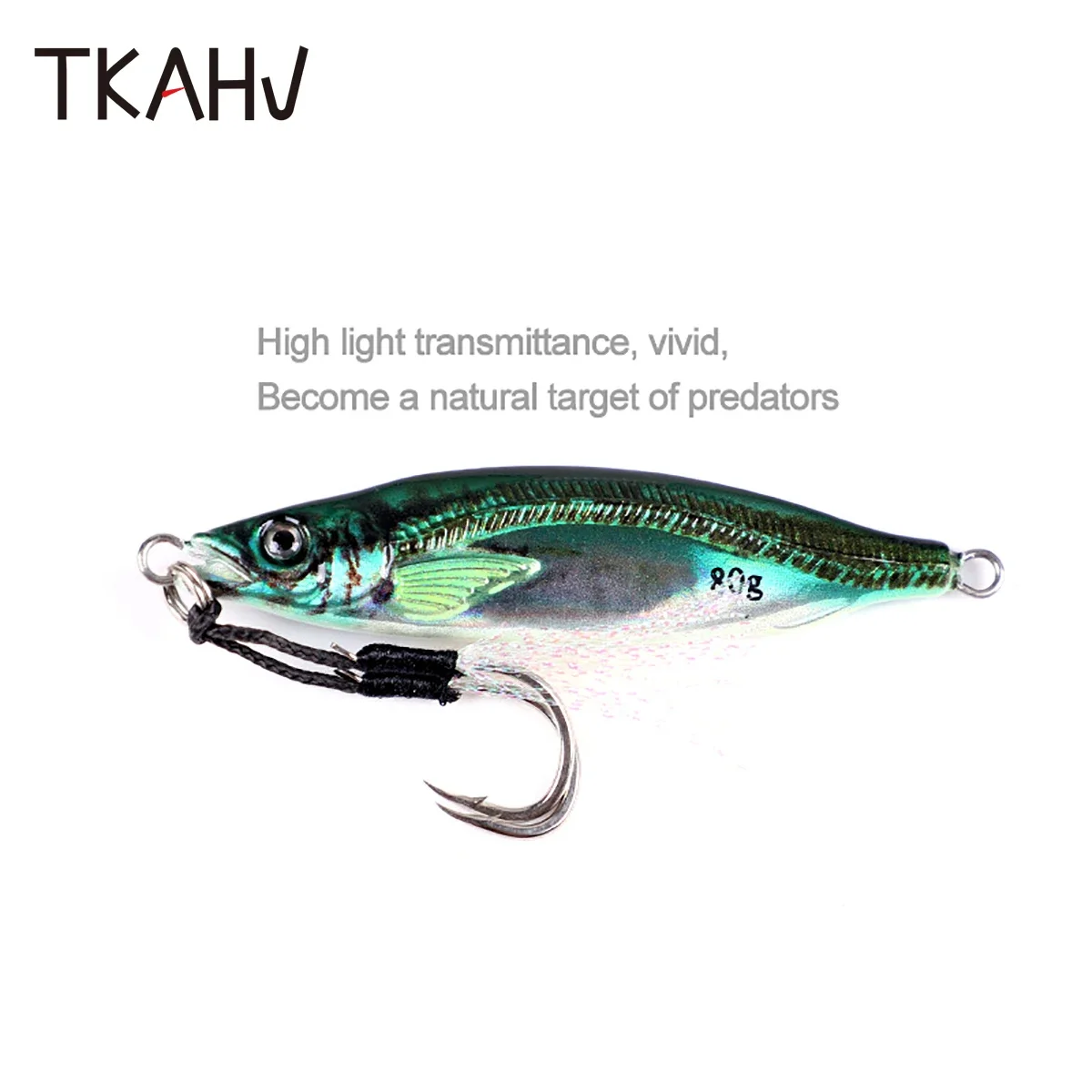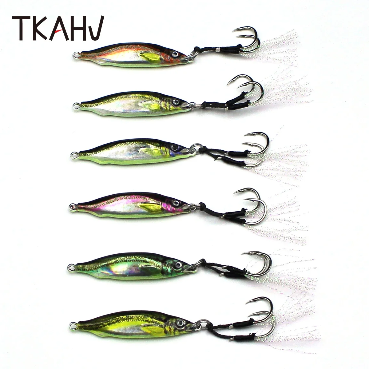 TKAHV 40g 60g 80g Metal Jig Vivid 3D Print Señuelo de pesca láser Anzuelos dobles Trucha dura Fundido Cuchara lenta Cebo artificial de agua salada