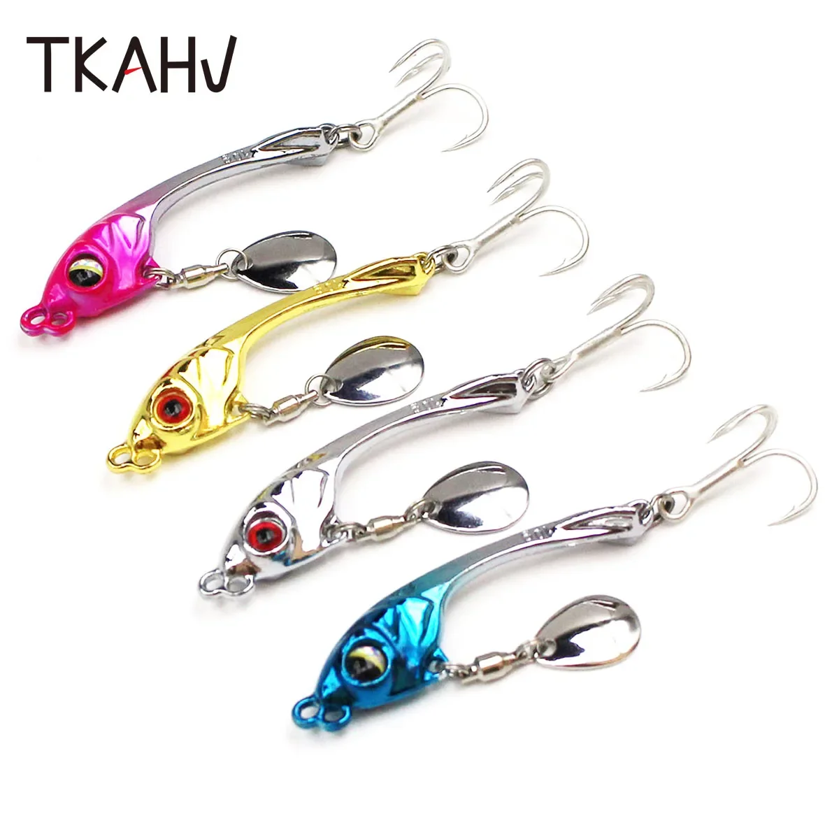 TKAHV 5G 7G 10g 15G 20g Spinner de vibración cebo duro cuchara brillante señuelo de pesca Metal Artificial trucha anzuelo triple aparejos de carpa