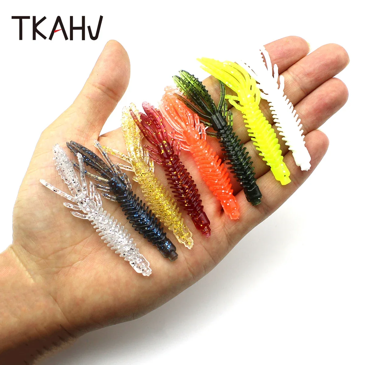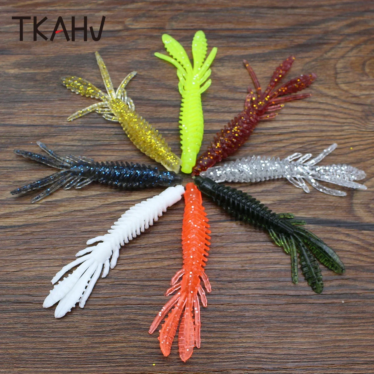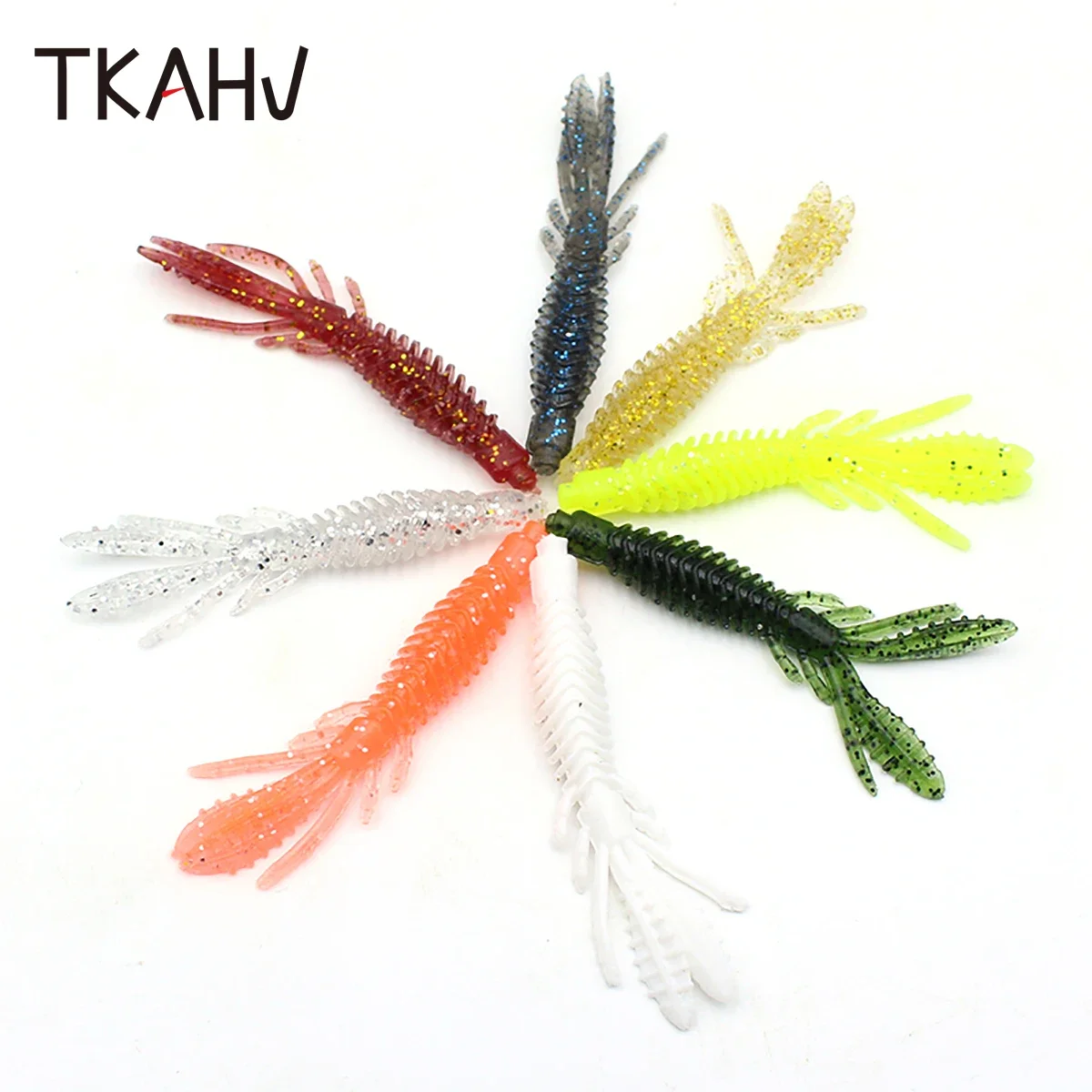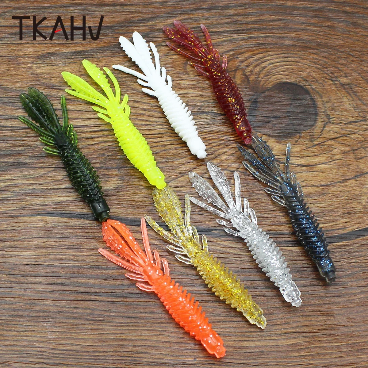 TKAHV 20 piezas 75mm 2,2G olor a pescado señuelo de pesca suave con sal Camarón cebo doble cola Jigging Wobblers gusano de silicona agua saladaCaracterística: