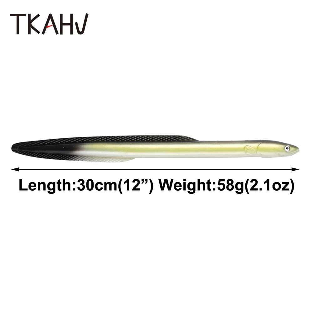 TKAHV, 1 pieza, 300mm, 58G, simulación de Anguila, señuelo suave para pesca, cebo Artificial para larvas, silicona, Loach, Lucio, Minnow, gusano, Swimbait