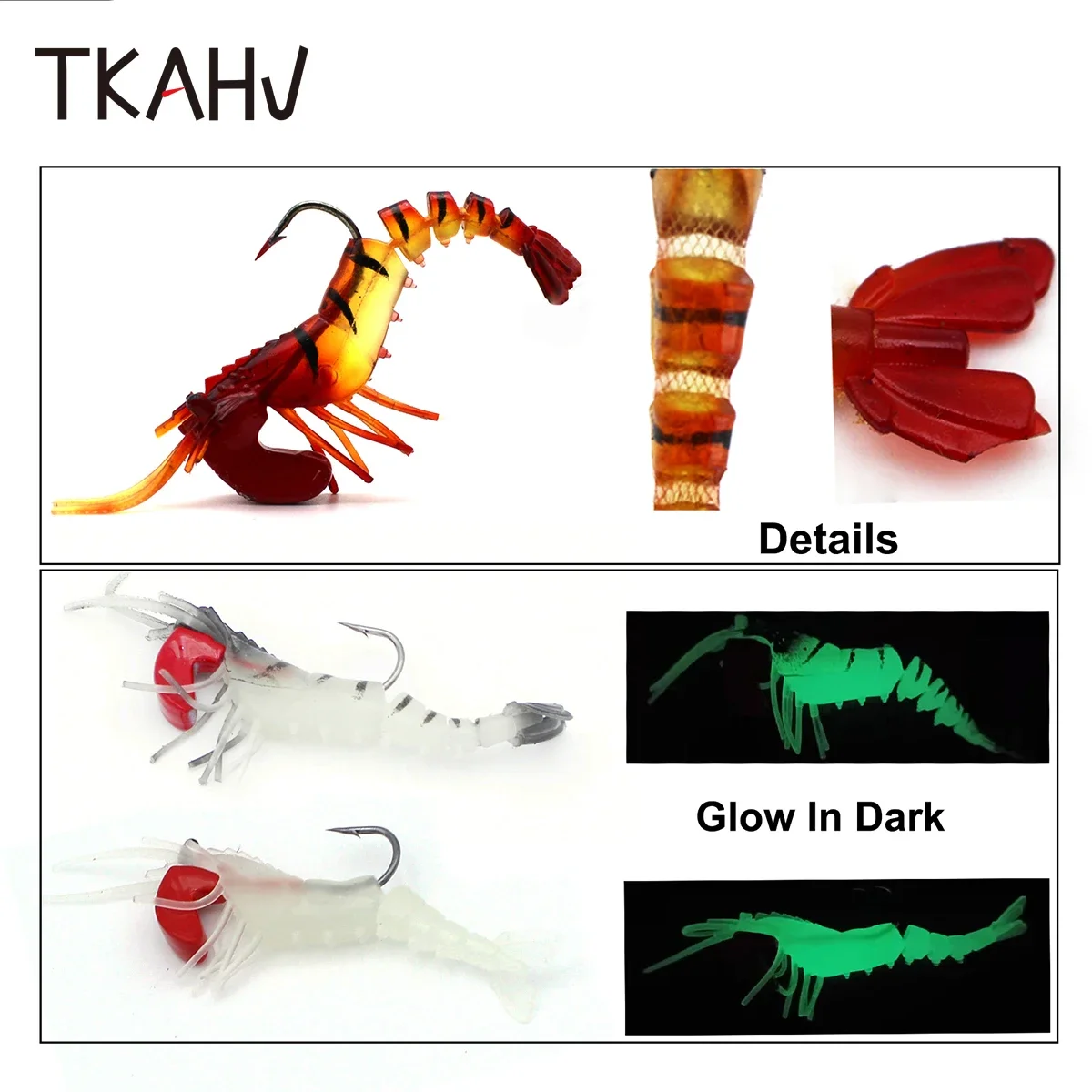 Paquete: 3 unidades/bolsa de señuelos de pesca de camarón