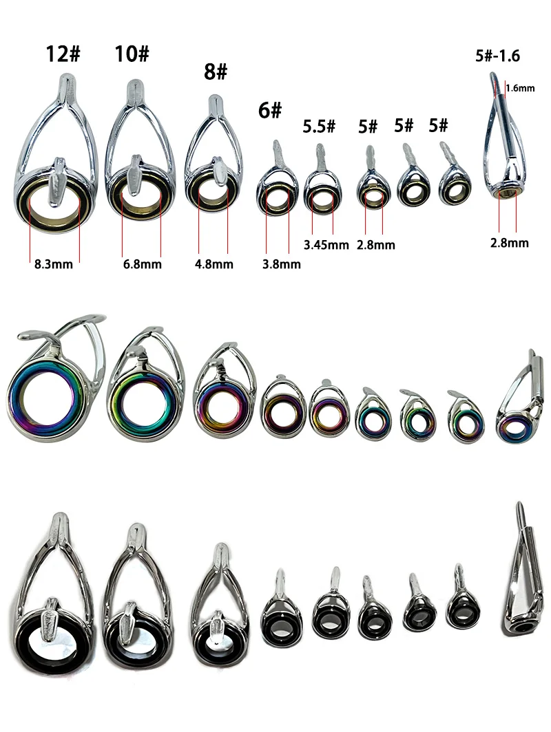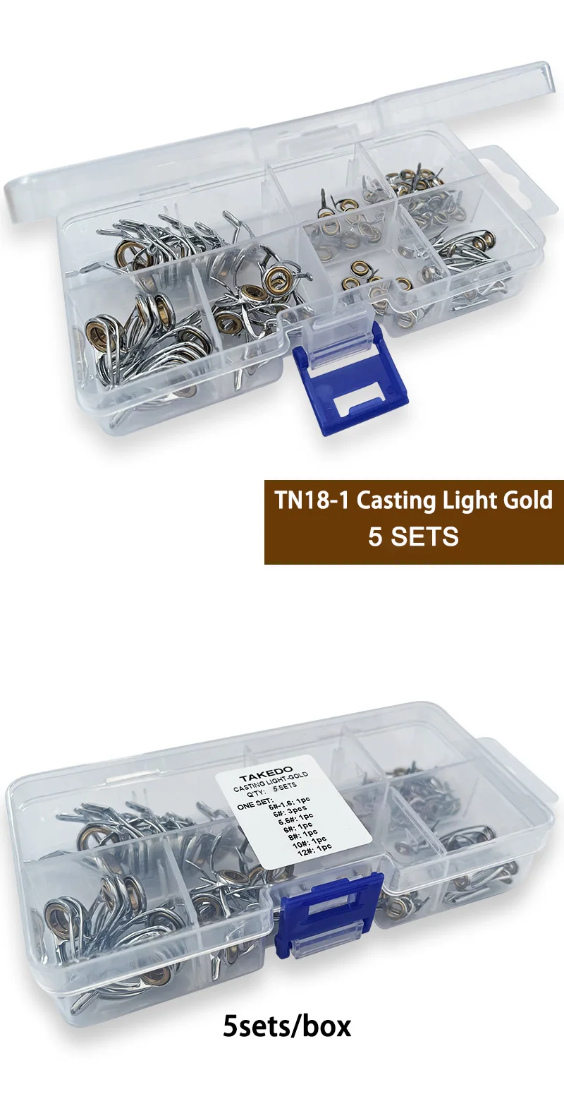 TN18-1 5 juegos de anillos de cerámica de acero inoxidable con luz de fundición, Kit de reparación de guías de caña, accesorios de repuesto de tamaño mixto para pesca