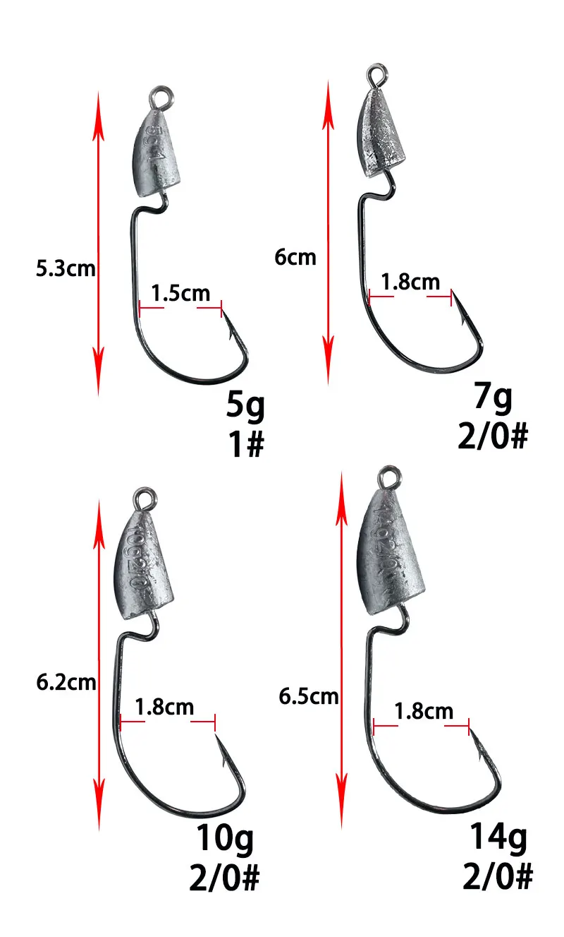 TN77 anzuelo de cabeza plomada de manivela, 5g, 7g, 10g, 14g, anzuelos de gusano suave, cabeza plomada de bala de acero inoxidable, anzuelos de pesca para pesca