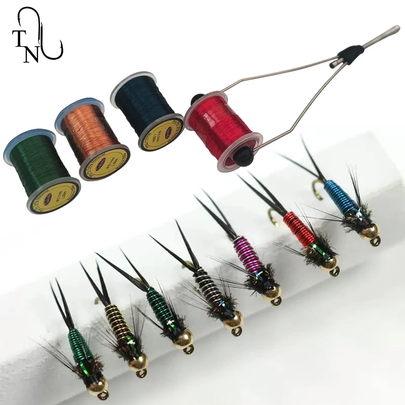 TN87 0,1 MM 50M/carrete cebo de pesca con mosca Material de atado alambre de cobre para cebo con mosca cuerpo acanalado plomo agua Metal atado de moscas hilo