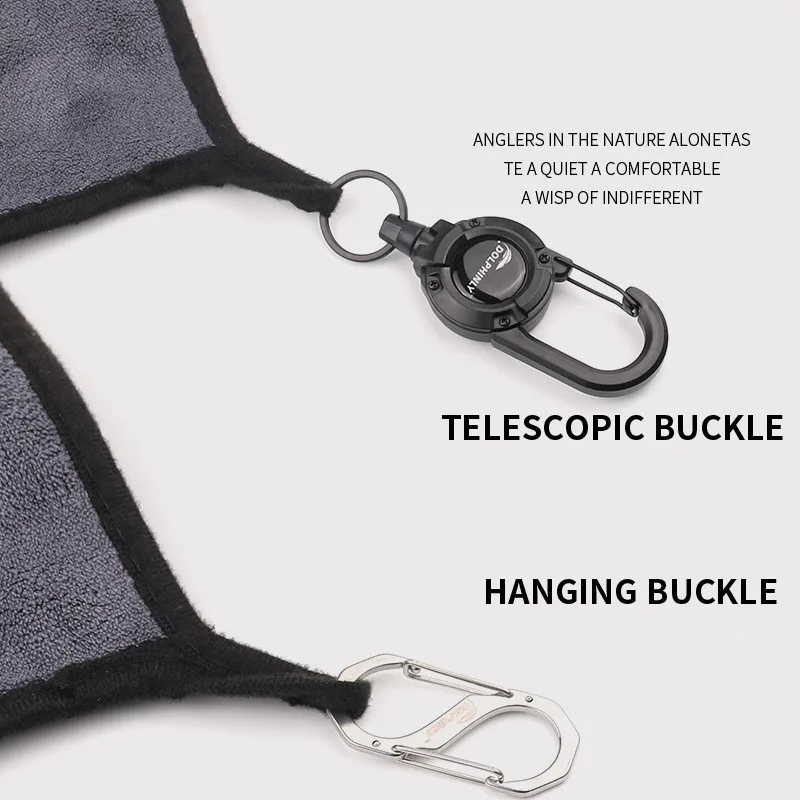 La toalla de pesca con hebilla portátil SHIQIAN está diseñada para facilitar su transporte, lo que la hace perfecta para viajes de pesca al aire libre.