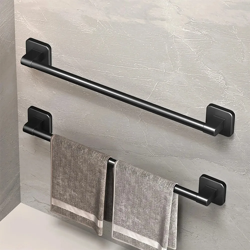 Toallero de baño blanco sin perforación, estante de almacenamiento de toallas negro, barra de toalla, ventosa no perforada, montado en la pared