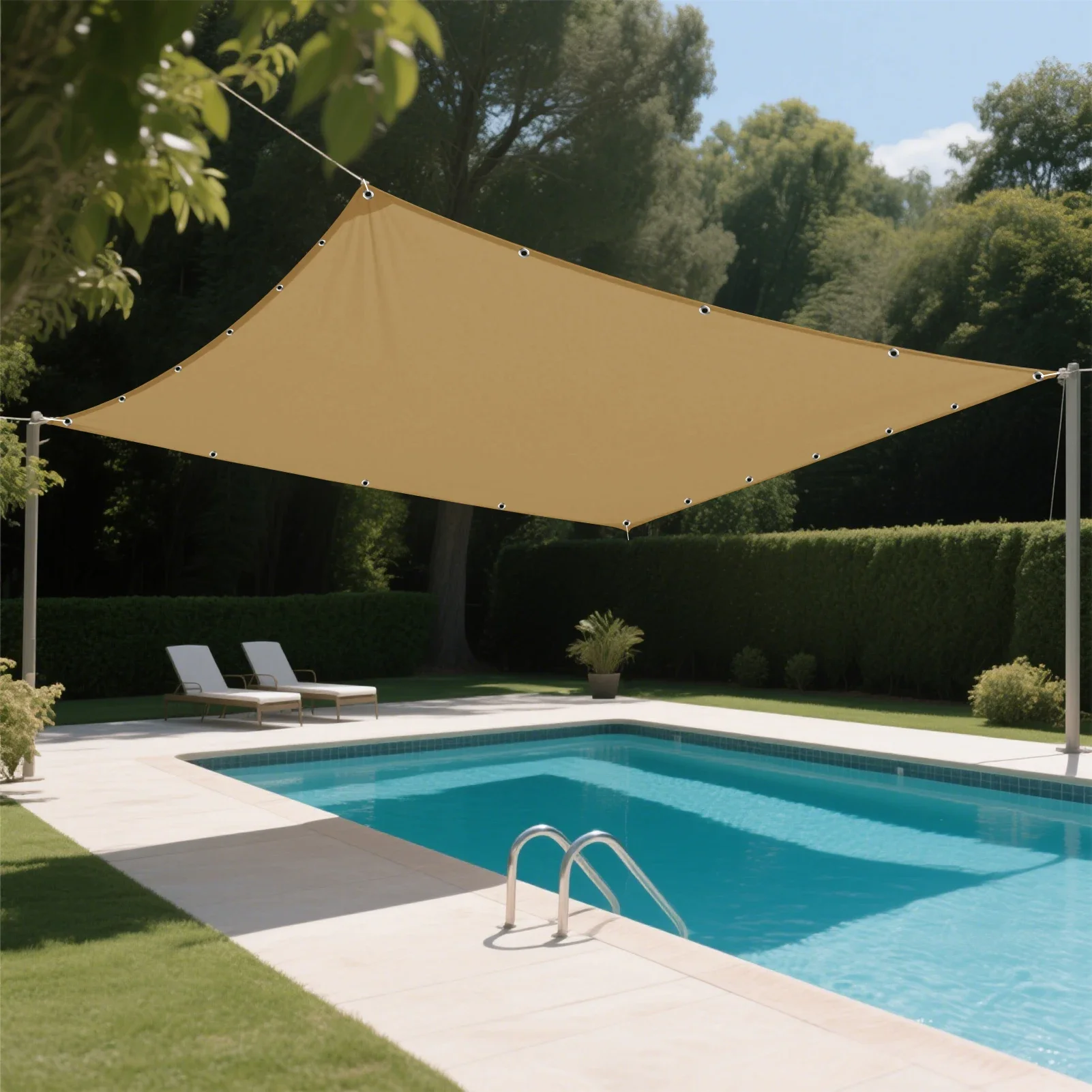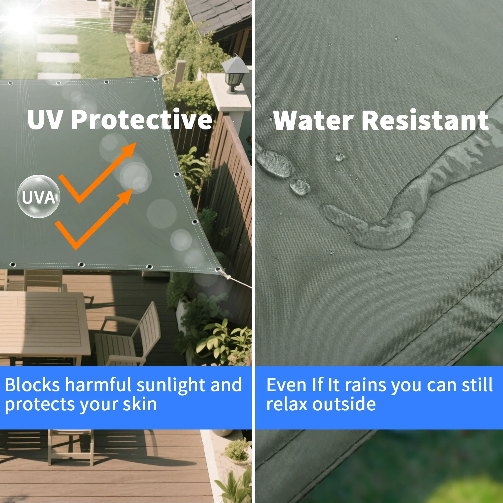 Alta calidad:La vela de sombra hecha de tela de poliéster densa y 100% de alta calidad puede lograr eficazmente un 95% de protección UV y una tasa de sombra del 90%.Puede reducir drásticamente la temperatura y crear un área exterior fresca y cómoda.Esta vela de sombra para exteriores está protegida contra los rayos UV, es impermeable, resistente a desgarros y puede alcanzar.Resistente al agua:La superficie de esta vela de sombra parecerá hojas de loto cuando golpee el agua.El agua se condensa en gotas y rueda sobre la superficie de la tela en lugar de penetrar a través de la tela.Sugerimos un ángulo de instalación de 20-40 grados para lograr la máxima tensión y también permitir que la lluvia se drene.Diseño duradero:Todos los bordes de la vela de sombra están acabados con costuras duraderas reforzadas de doble capa para evitar bordes deshilachados y deformaciones.El espacio entre orificios estándar del toldo es de 50 cm.Disponible en diferentes colores y tamaños para crear lugares únicos y diferentes.Podemos proporcionar servicios de personalización de productos.Fácil de instalar:Los ojales de aluminio cosidos cada 50 cm en la parte superior e inferior garantizan la máxima estabilidad.Puede utilizar cuerdas y kits de instalación para instalarlas de forma fácil y segura.Con este sencillo método de instalación, puedes instalar velas de sombra en paredes, cercas, pilares e incluso árboles.Práctico y multifuncional: