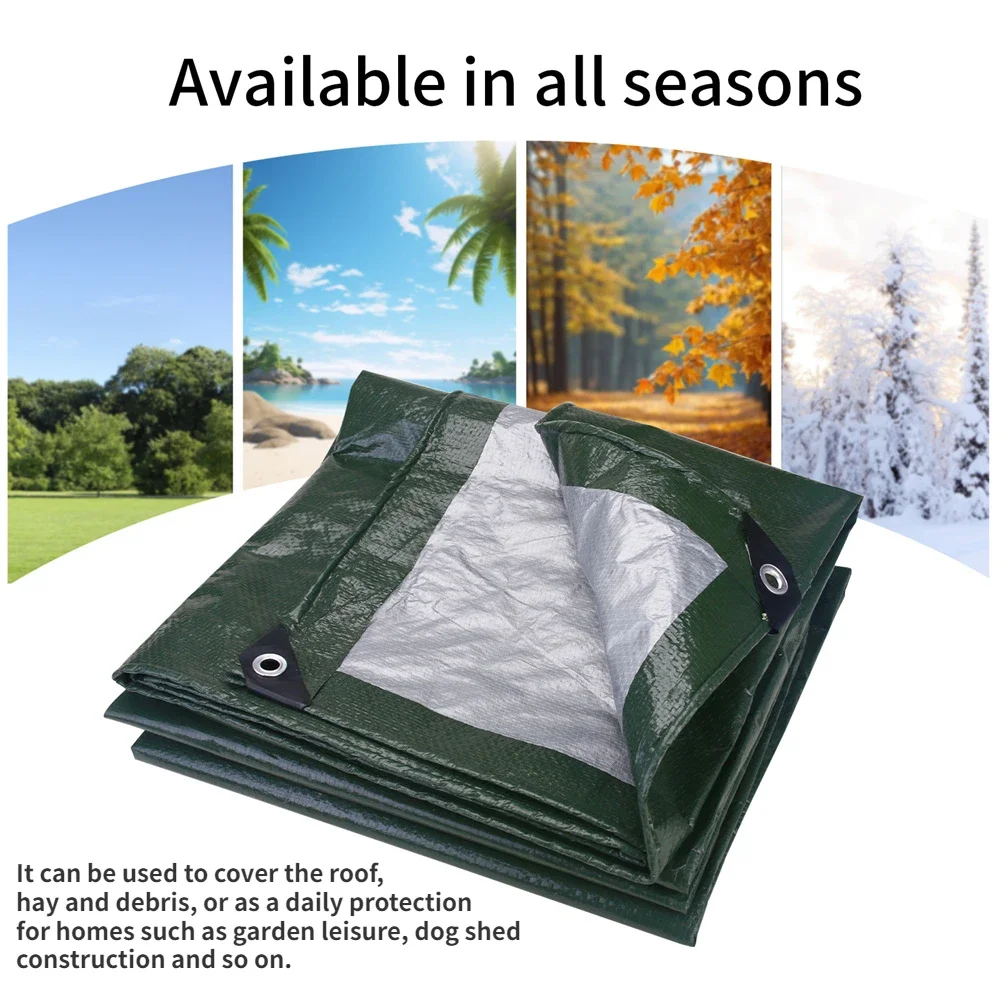 La lona impermeable se puede utilizar para cubrir el techo, el heno y los escombros, o como protección diaria para hogares como el ocio en el jardín, la construcción de casetas para perros, o como una hoja de tierra, etc.