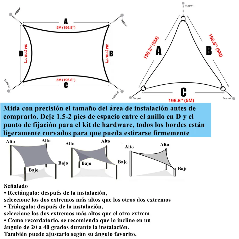 Para vela de sombra rectangular: 3x2M, 3x4M