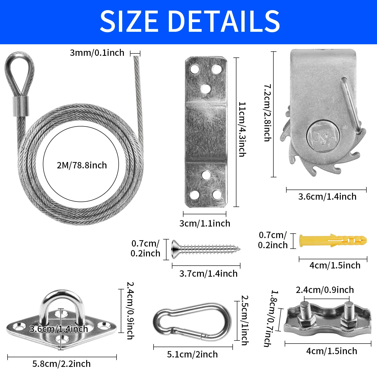 2. The size we show is the straight line distance between the four corner hooks.