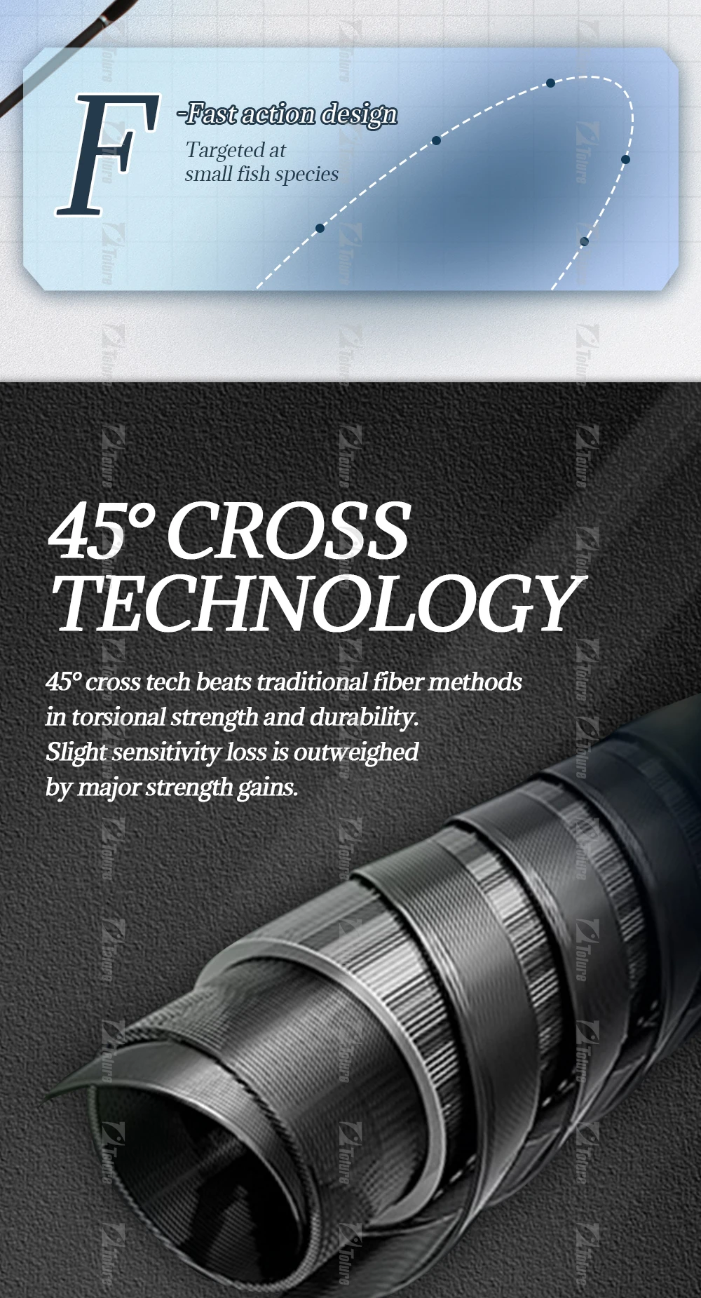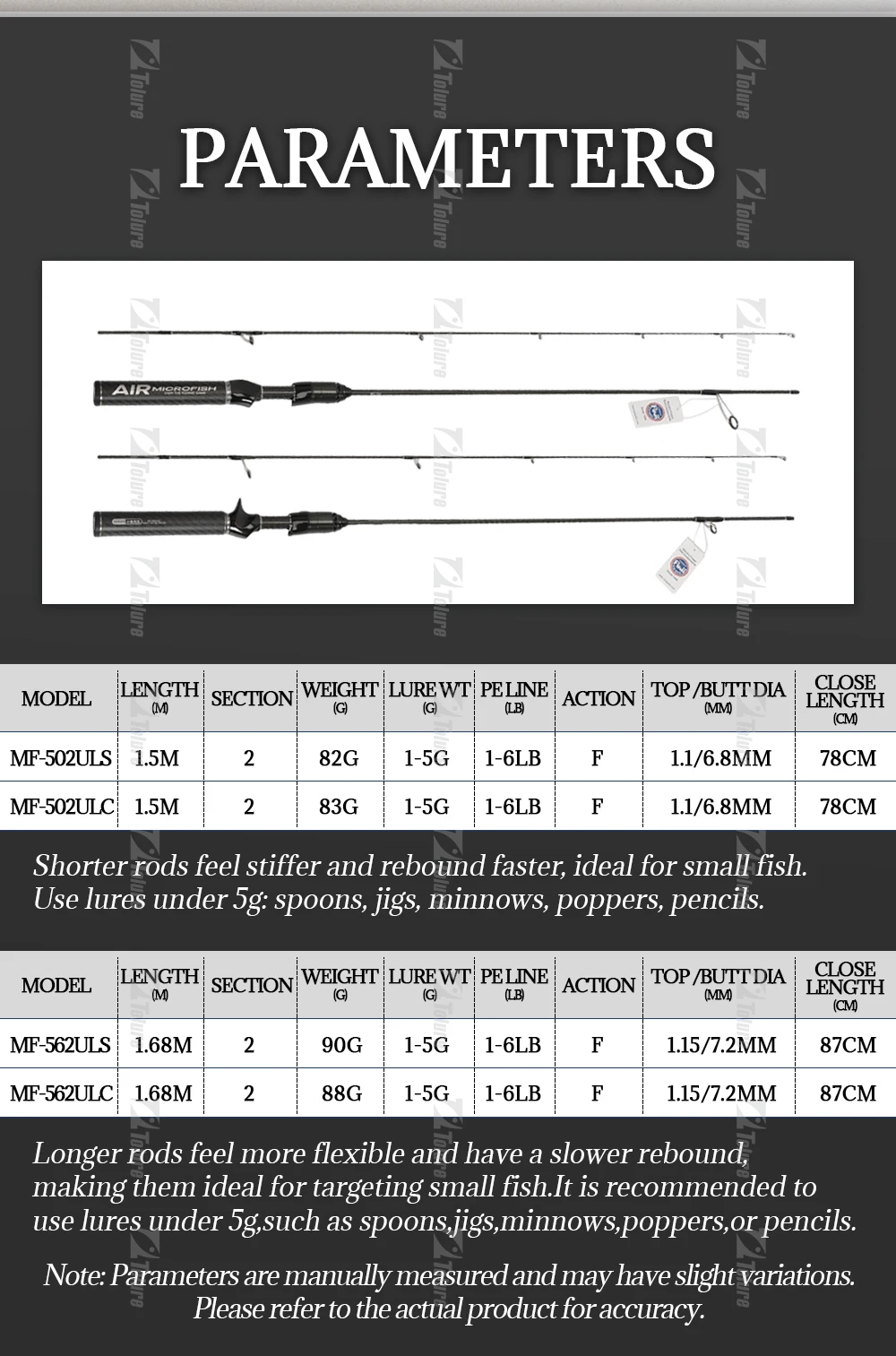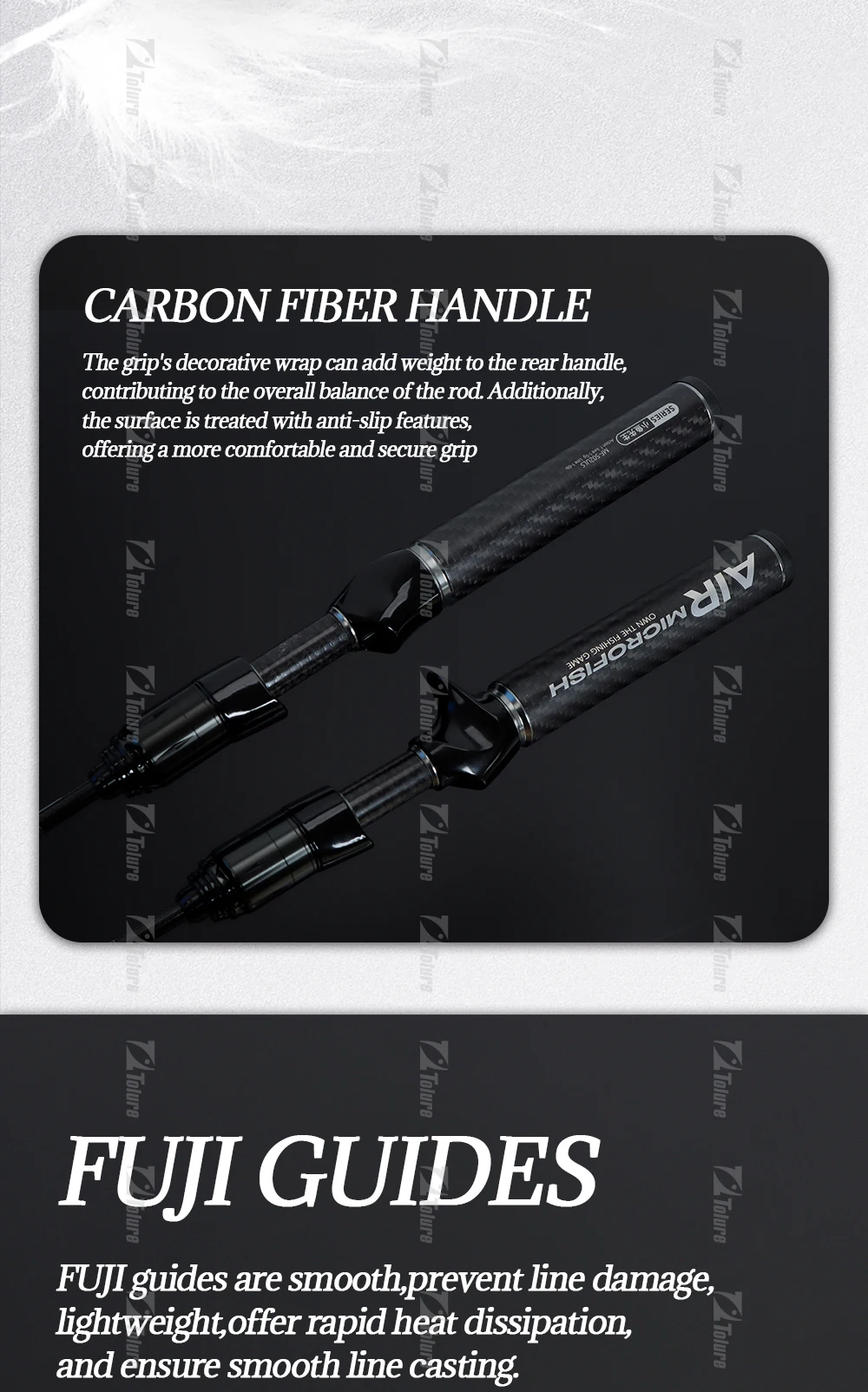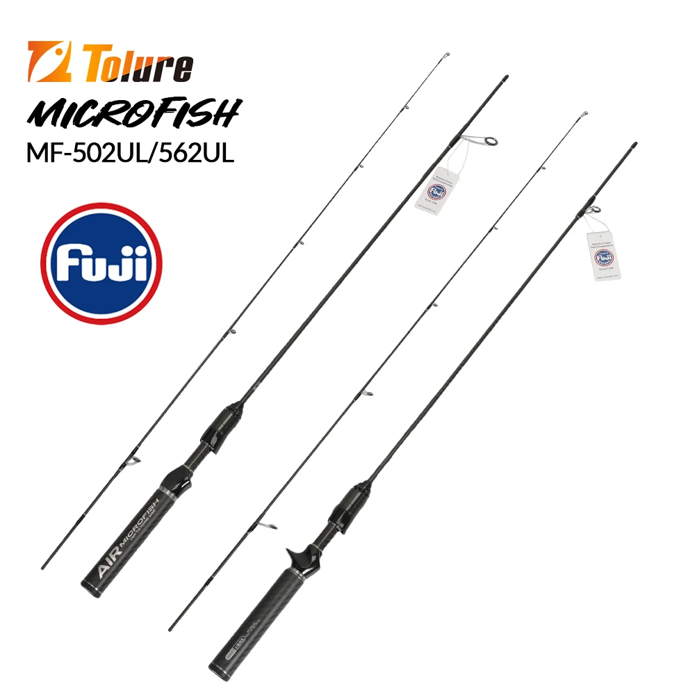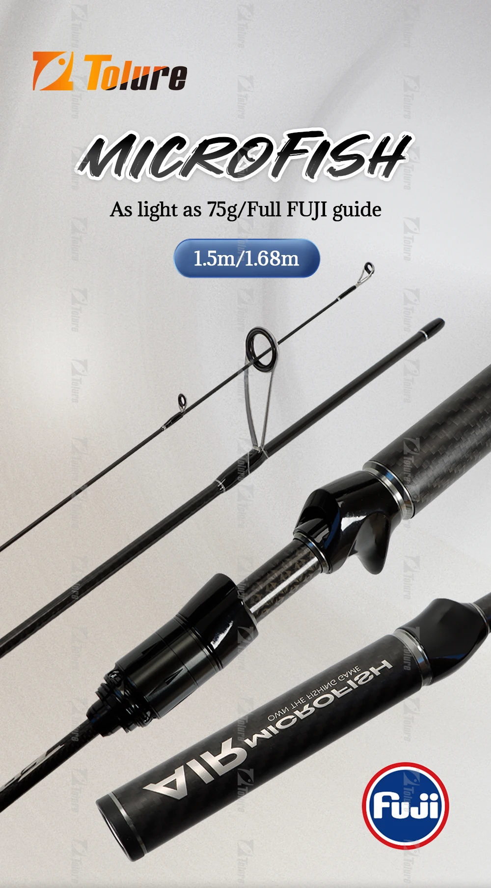 TOLU-caña de pescar con señuelo de 2 secciones, serie Microfish, diseño súper ligero, guía FUJI Original, mango de fibra de carbono de 1,5/1,68m