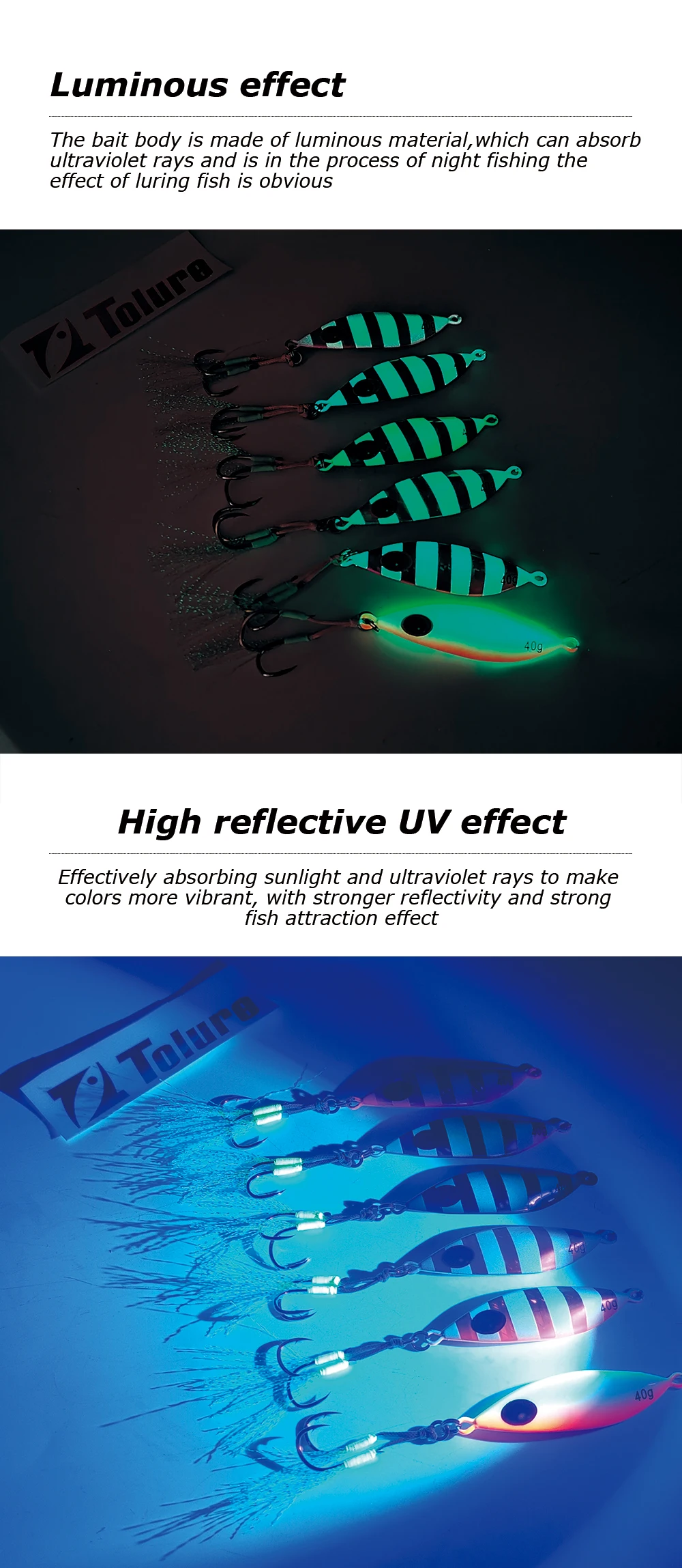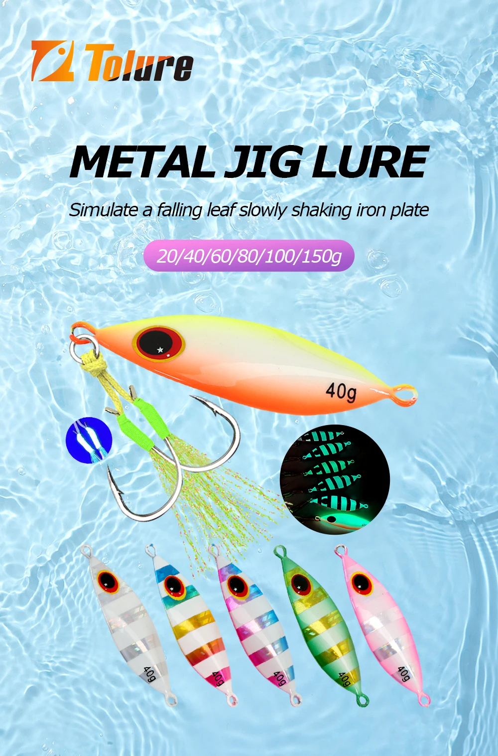 TOLU-cebo duro de 20g-150g, señuelo de pesca de Metal de hundimiento lento con anzuelos, plantilla de brillo plano, cebo Artificial, aparejos de fundición larga
