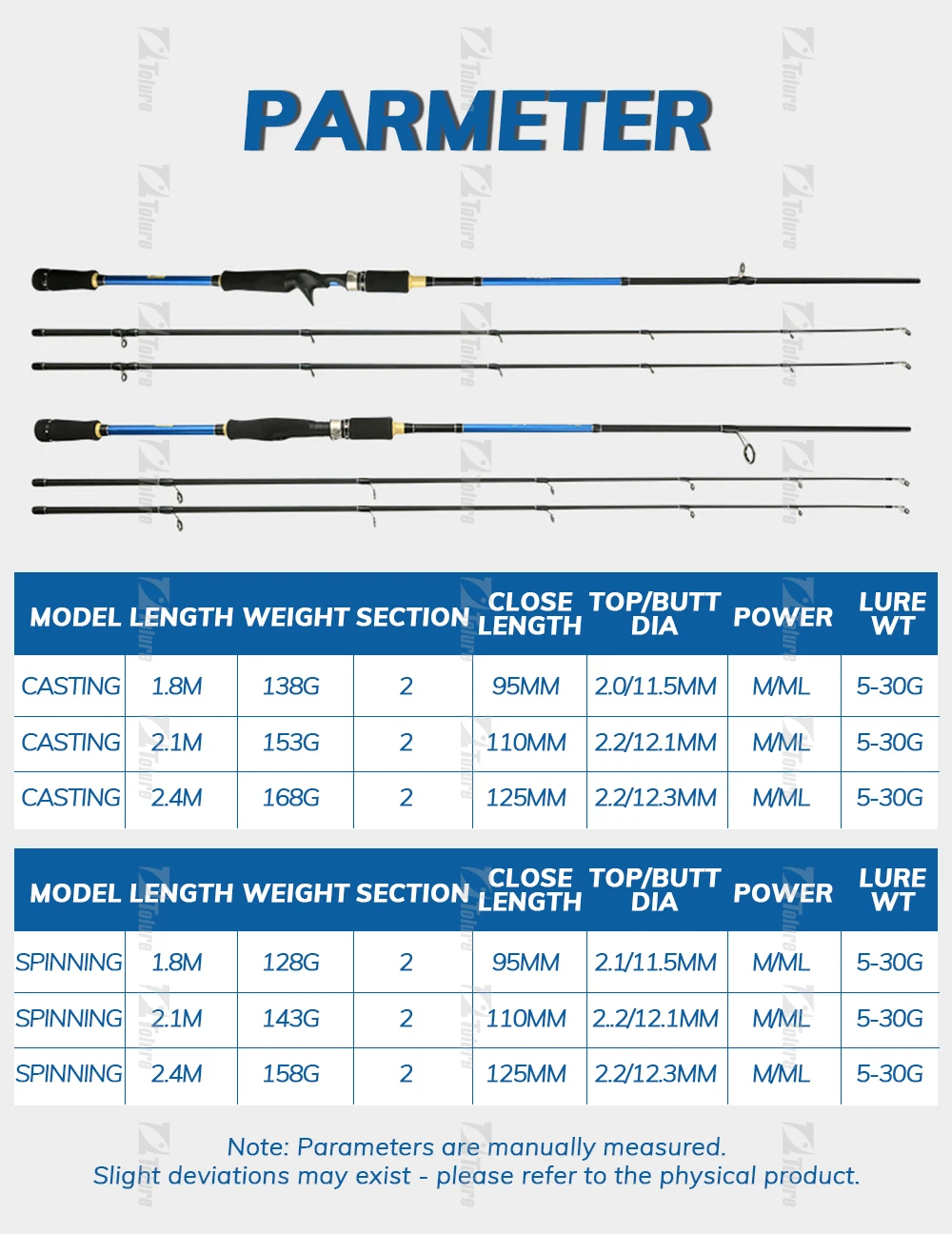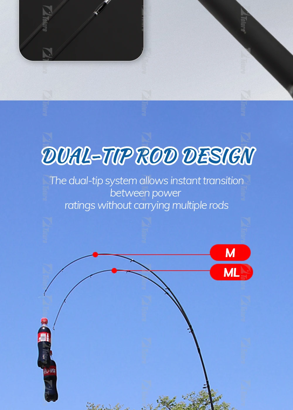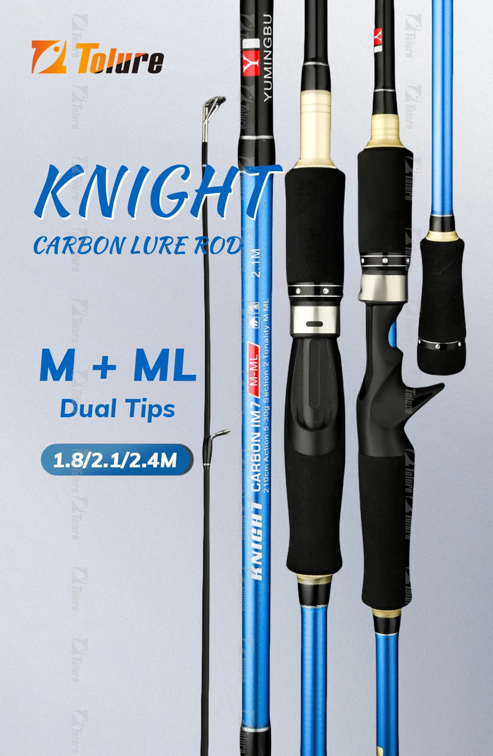 TOLU Knight-caña de pescar de doble punta, 2 secciones, 1,8/2,1/2,4 M, giratoria/fundida, M/ML, peso del señuelo 5-30g para pesca de lubina y carpa