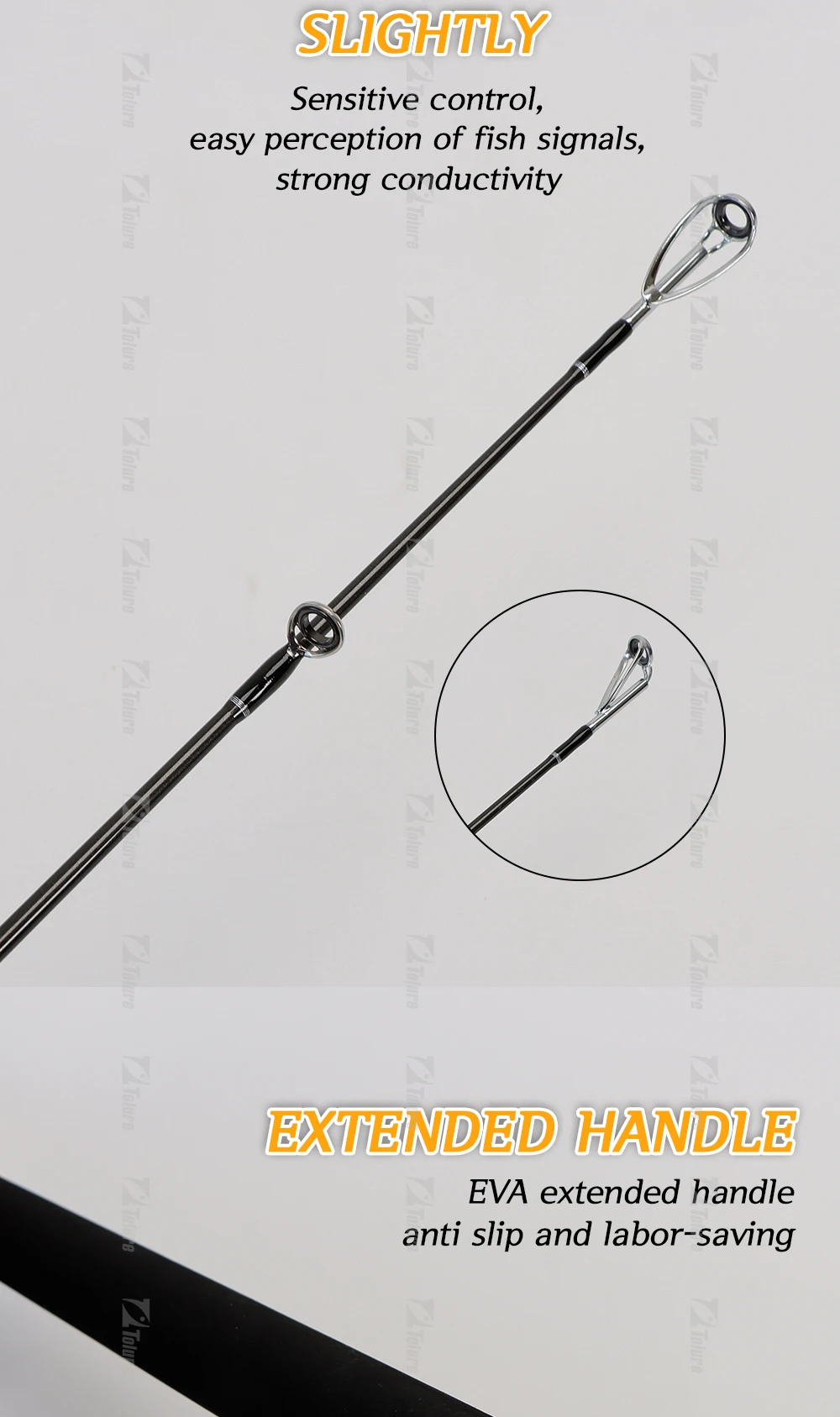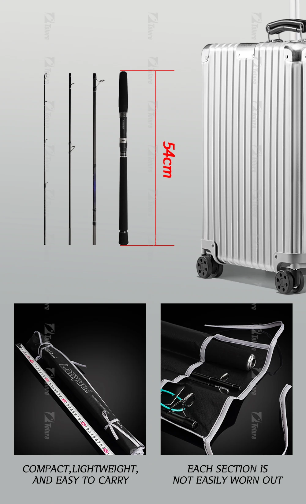¡Hombre, qué caña! peso ligero pero potencia pesada, con capacidad nominal de 30 lb pero puede manejar incluso trenzas de 60 a 80 lb, seguramente compraré otros, ya esperando el de 8 pies