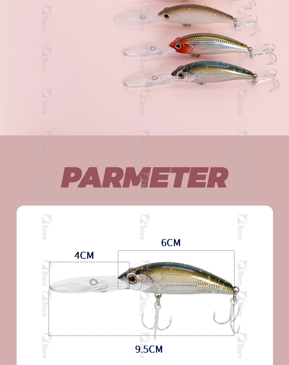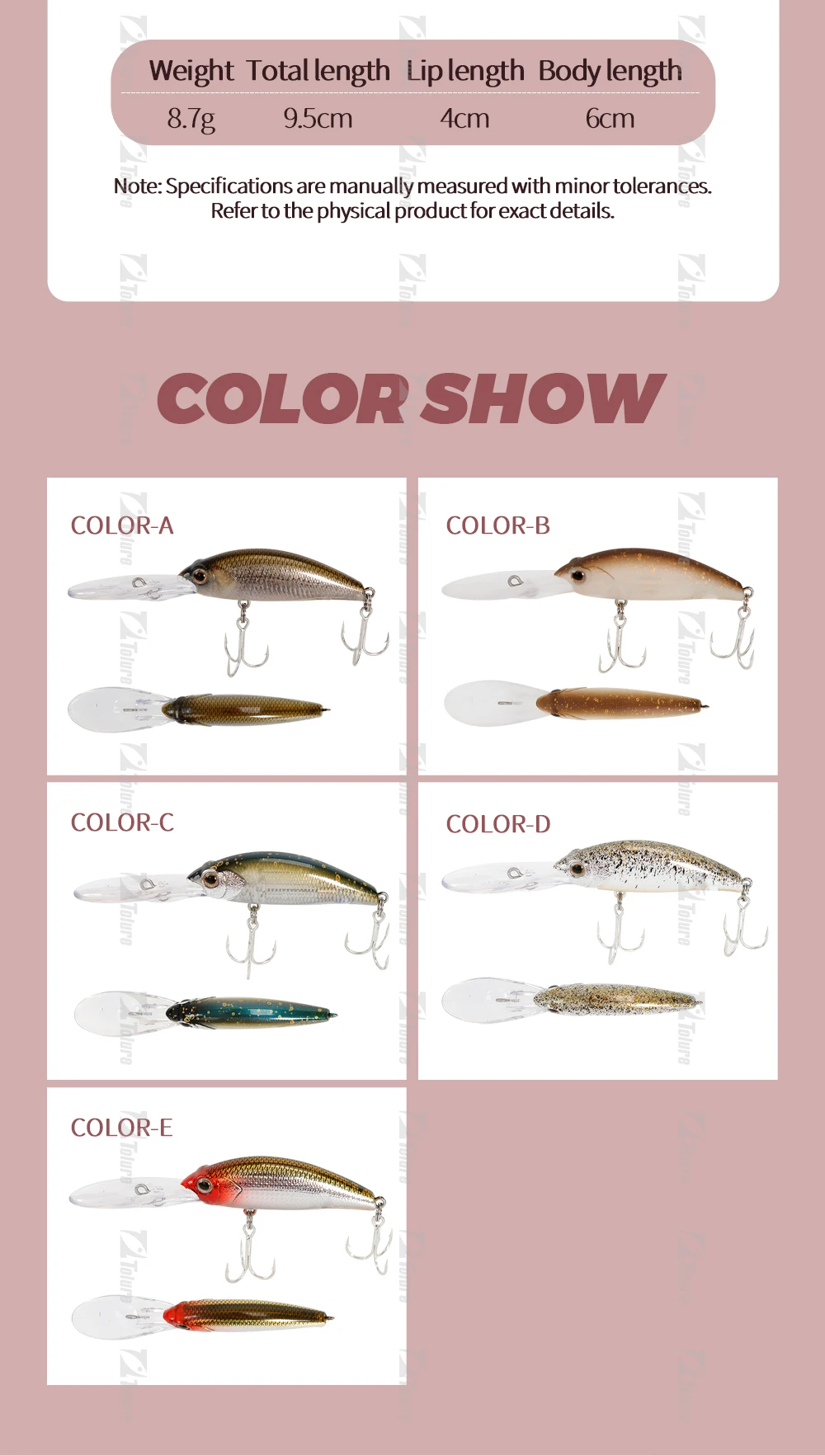 TOLU-señuelo de pececillo, 1 Uds., 9,5 cm, 8,7g, Wobblers, señuelo de pesca de buceo profundo, cebo duro Artificial, pesca en el mar, lubina, Lucio