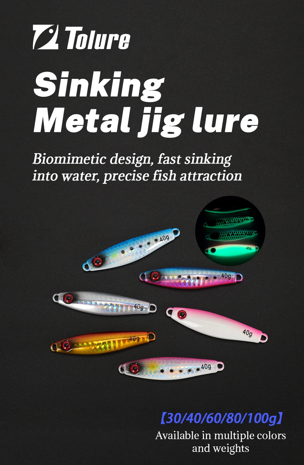 TOLU-señuelo de plantilla de Metal de hundimiento rápido, ojos 3D, 30g40g60g80g100g, señuelo de pesca de fundición a tierra de agua salada, plantilla de Metal Vertical, nuevo