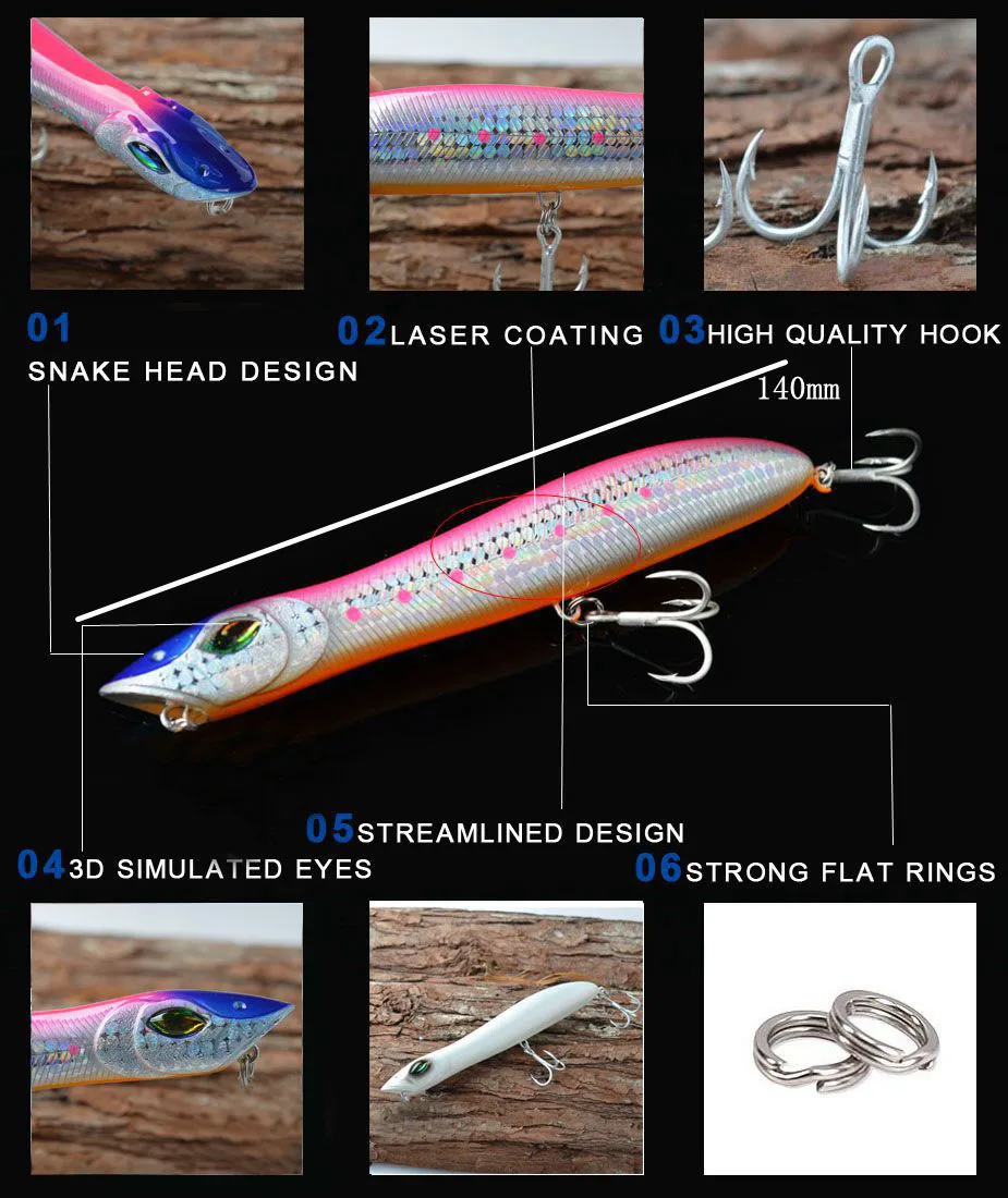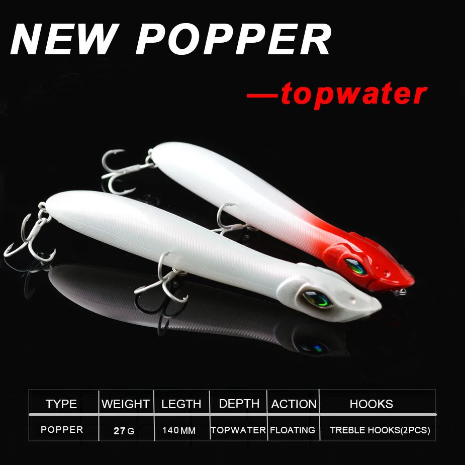 TOMA pesca señuelo duro flotante Popper pesca Wobblers 140mm 27G Topwater cebo Artificial para lubina Lucio aparejos de pesca