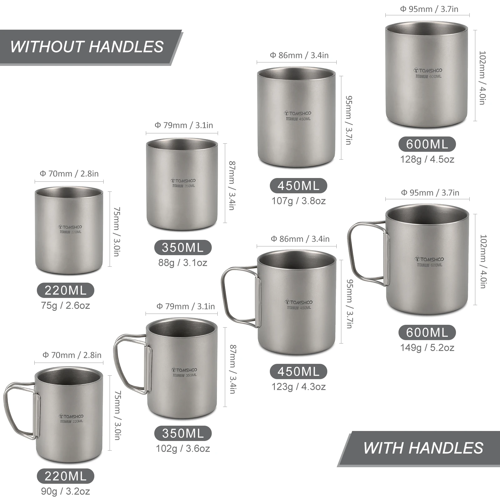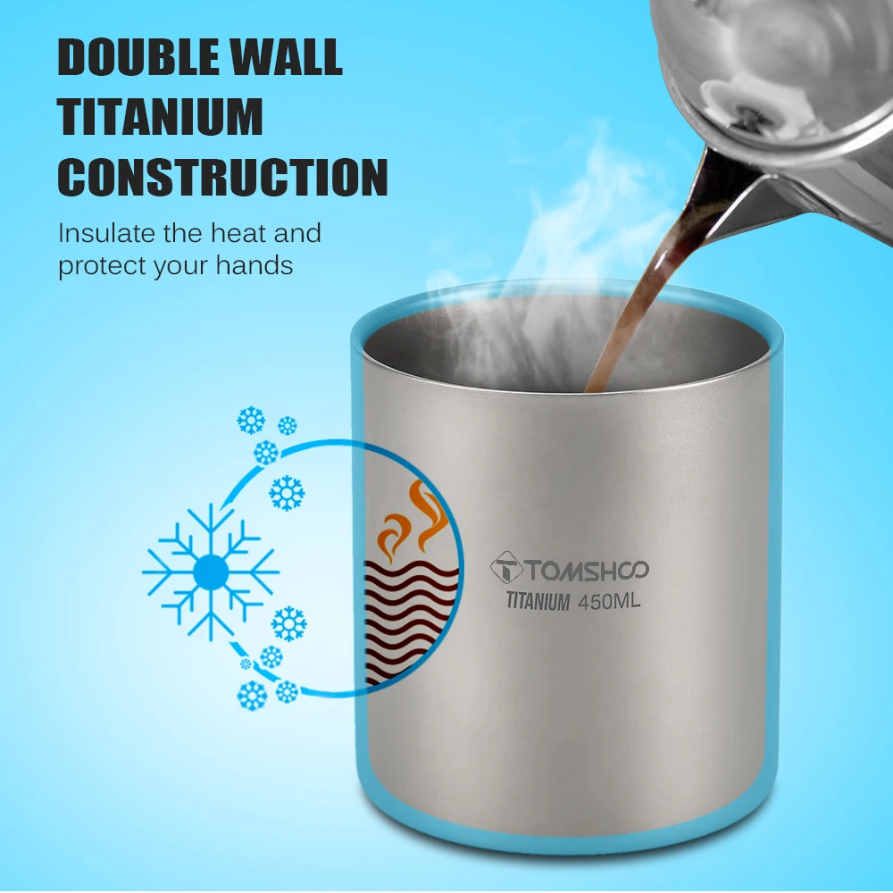 Taza de agua de titanio de doble pared, ideal para el hogar, la Oficina, camping, senderismo, mochilero, picnic y otras actividades al aire libre.