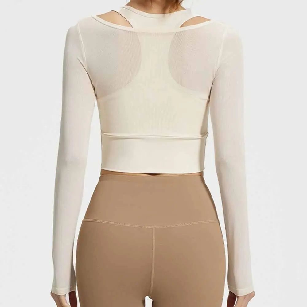 Top deportivo con espalda bonita para mujer de yoga|Ajuste delgado y adelgazamiento de manga larga profesional para correr Pilates entrenamiento y ajuste|Diseño ajustado: ajuste delgado favorecedor a tu figura, perfecto para una apariencia estilizada durante los entrenamientos.