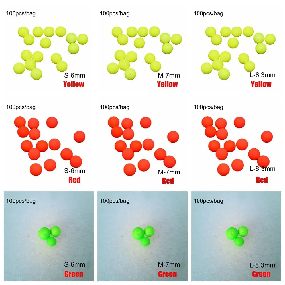 100% nuevo y de alta calidad Crean acciones de natación realistas en el agua Acción DE BUCEO suave y rápida Colores brillantes con olor a sal para atraer peces grandes Fácil de usar debido a la combinación adecuada de tambaleo y rodadura. También es fácil para el estudiante de primer año Material EPS Color rojo, amarillo, verde Especificaciones: S,M,L Diámetro: 6mm,7mm, 8,3mm Nombre: Bola de flotador EPS Material: material EPS Paquete incluido: Bola de flotadores de espuma de 100,