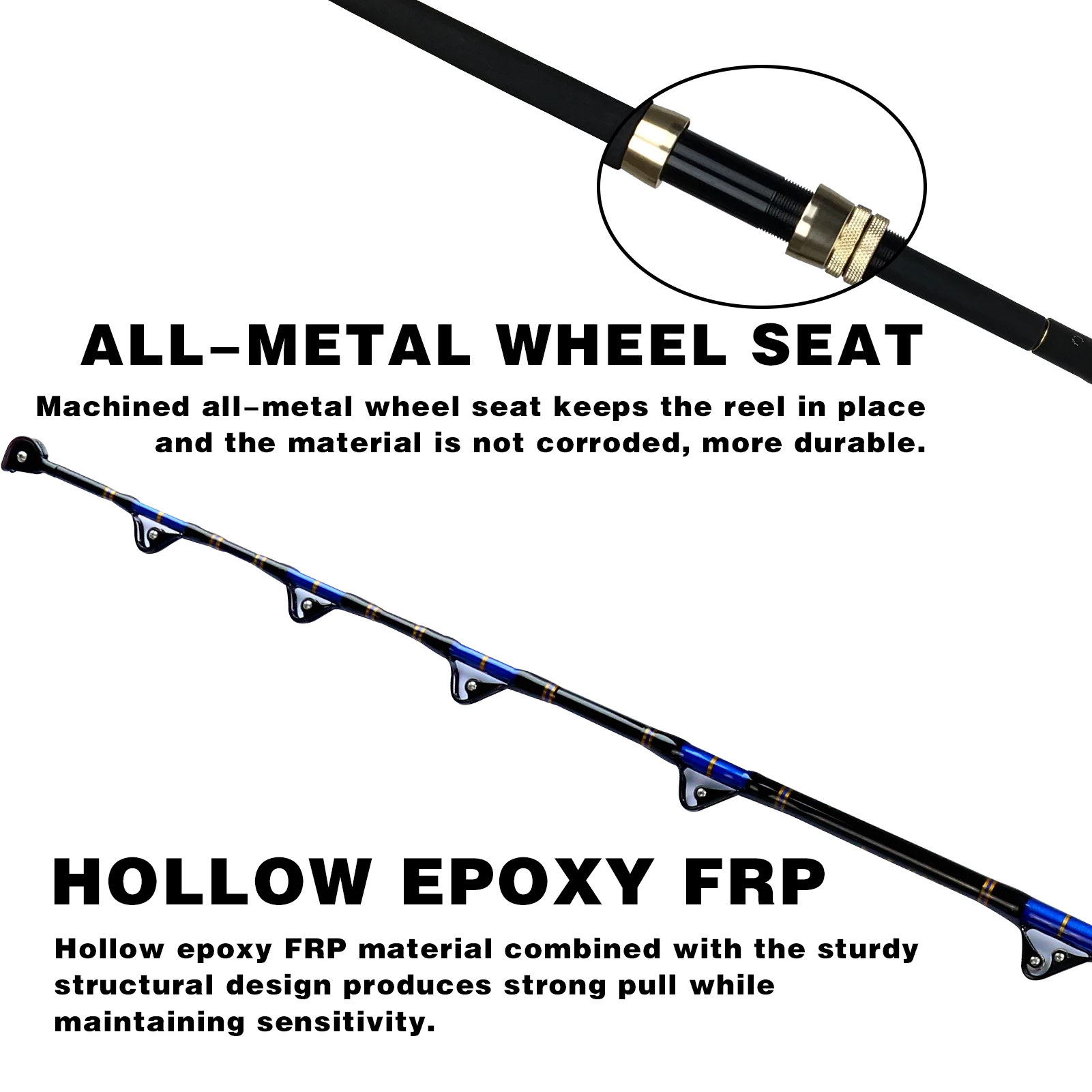 El asiento de rueda totalmente metálico mecanizado mantiene el carrete en su lugar para un gran juego y el material no se corroe. Más duradero, te ayuda a ahorrarte la molestia de comprar una nueva caña de pescar repetidamente, resalta una calidad maravillosa.