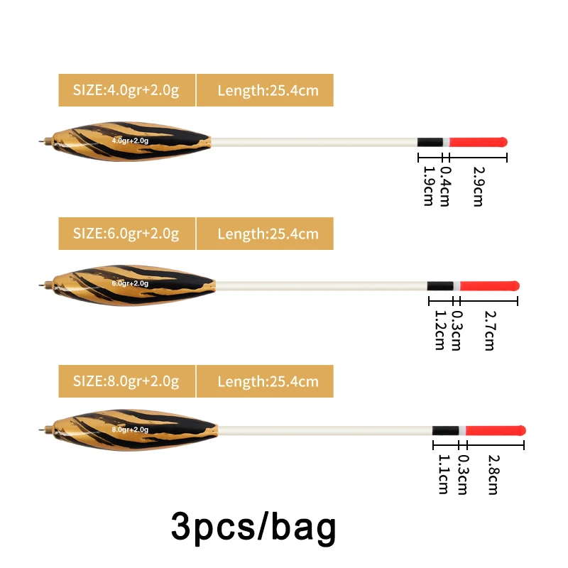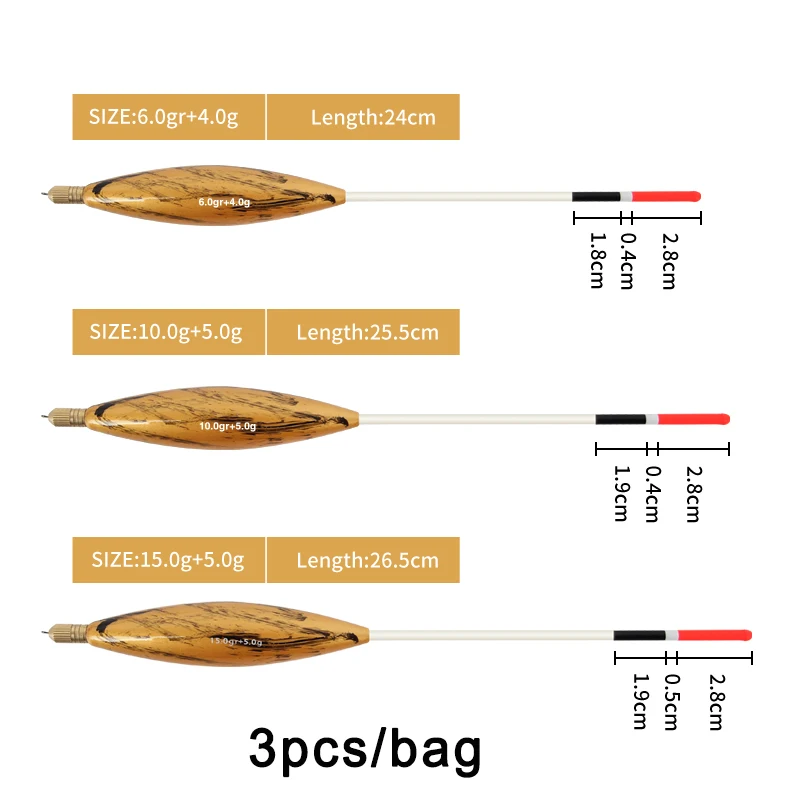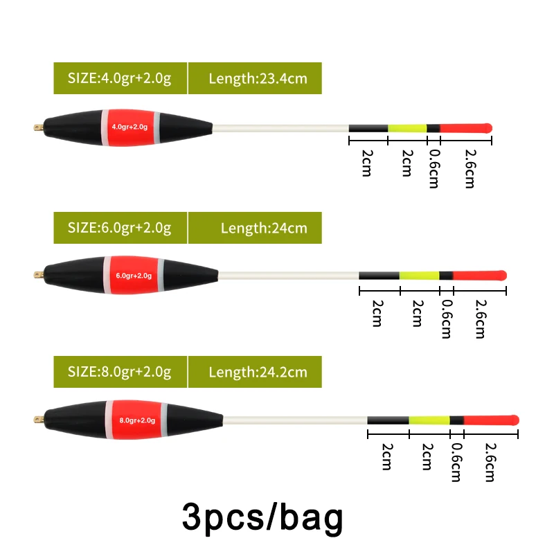 1. Los bobbers deslizantes son extremadamente sensibles que los bobbers redondos tradicionales. Muy sensible cuando el pez toma el cebo. Deslícese libremente hacia arriba y hacia abajo de su línea de pesca.