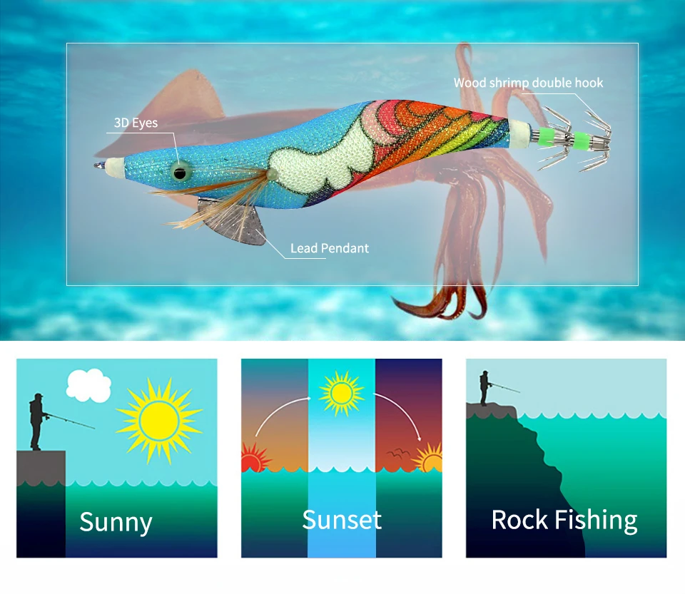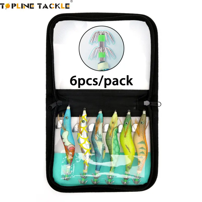 Topline-señuelo luminoso de calamar con plomo, cebos artificiales de Camarón, ojos 3D, sepia con anzuelo, accesorios