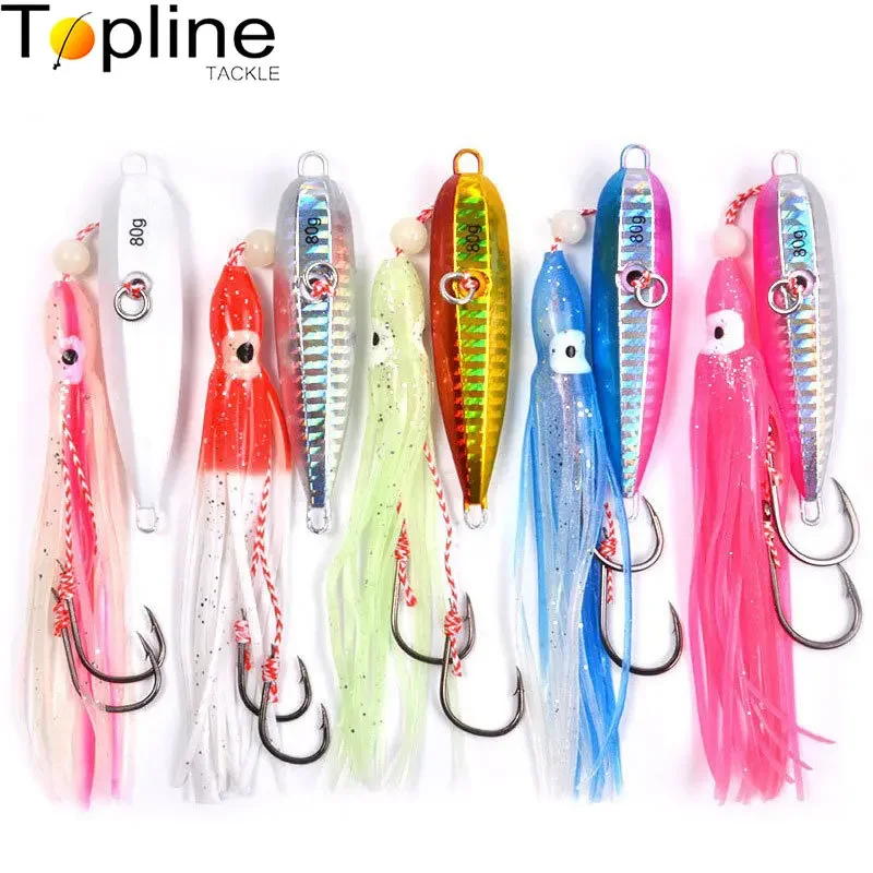 Topline-Señuelos de Pesca luminosos para barco, anzuelo de cebo de falda de pulpo de Metal, plantilla lenta, 100g, 120g, 150g, 200g, accesorios de pesca