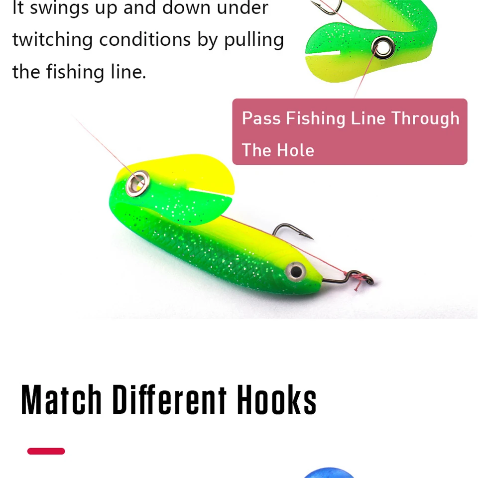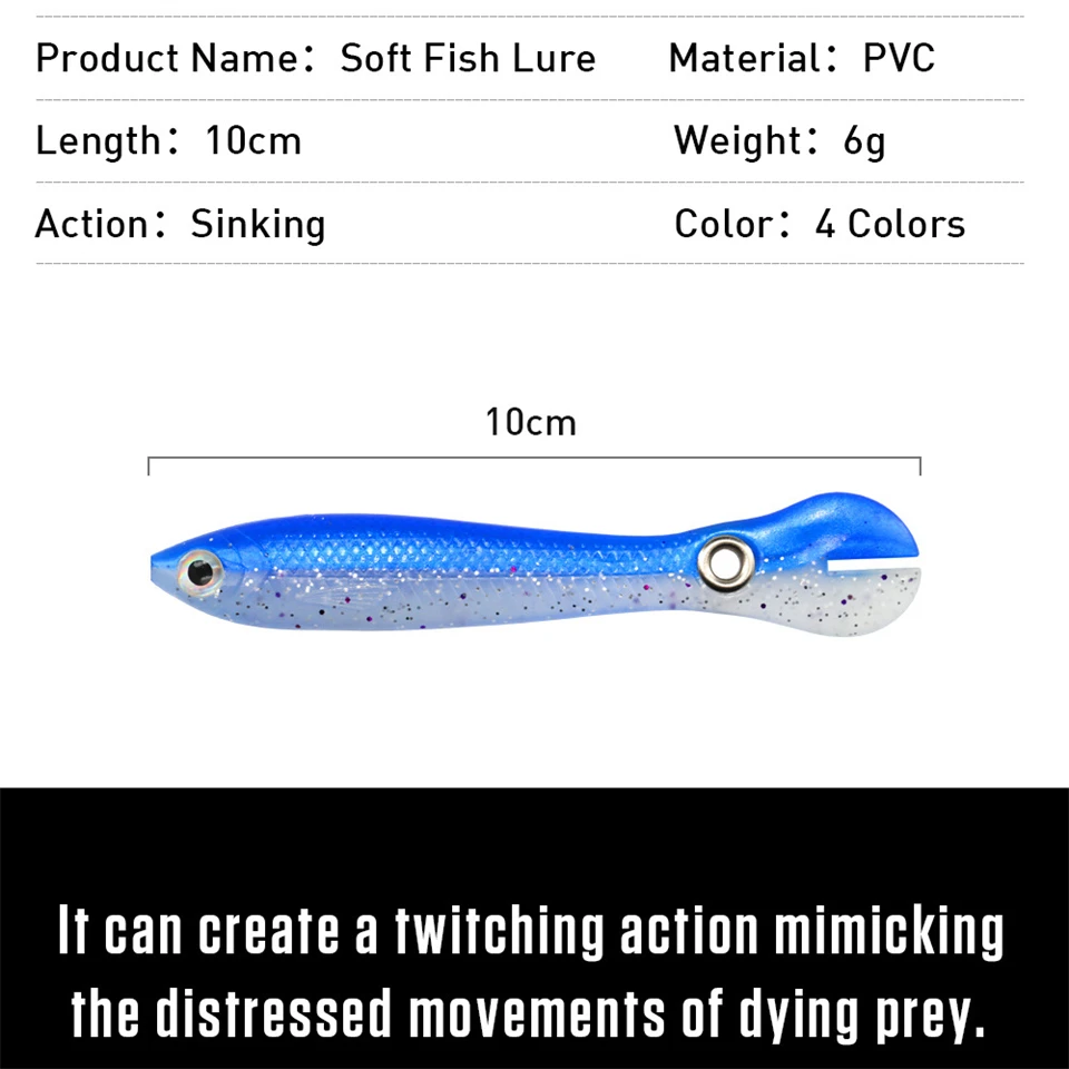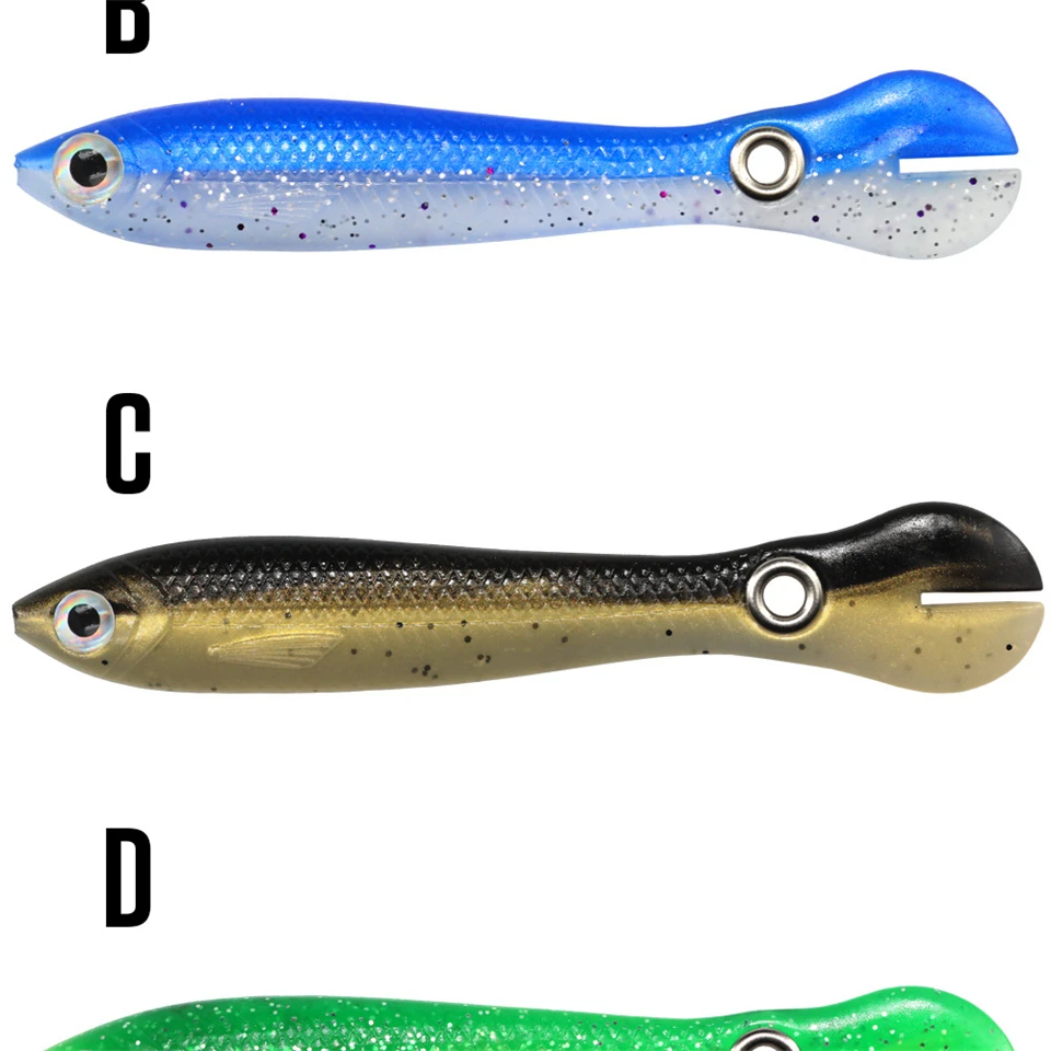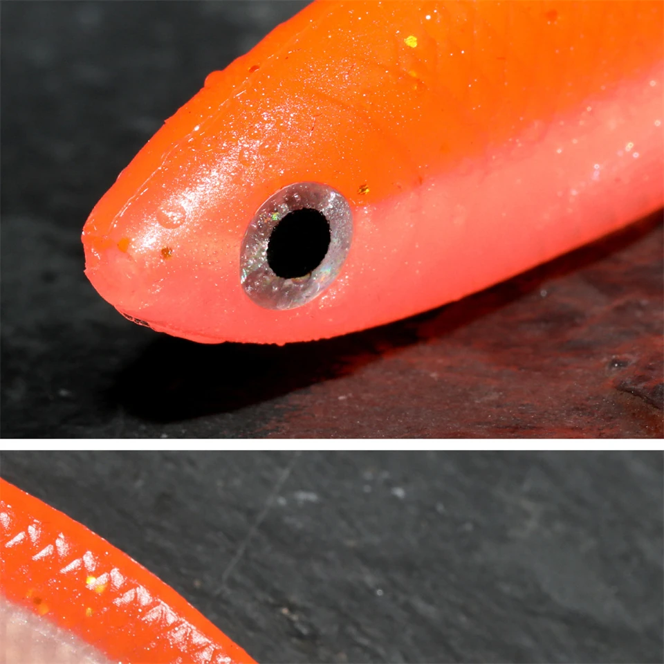 Característica: 1: Modo de empleo: Utilice el anzuelo para enhebrar desde la boca del pez y enhebrar la sublínea desde el vientre/parte posterior del pez para conectar el anzuelo. 2: Ojo de pez de simulación 3D, aspecto tridimensional inteligente y realista. 3: El cuerpo del cebo es suave, la apariencia es realista y la postura de natación es flexible. Especificación: