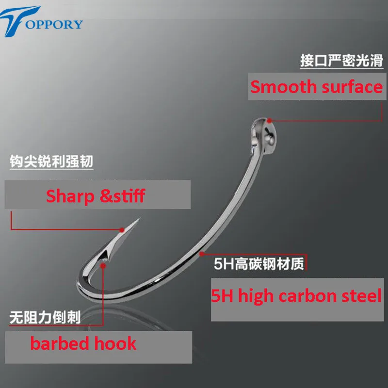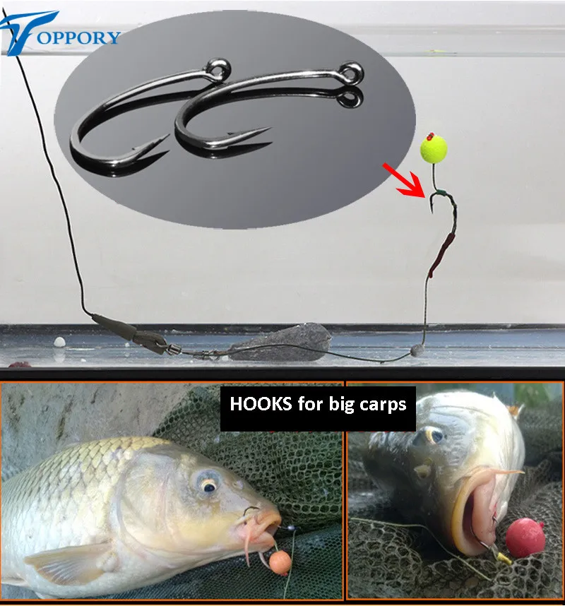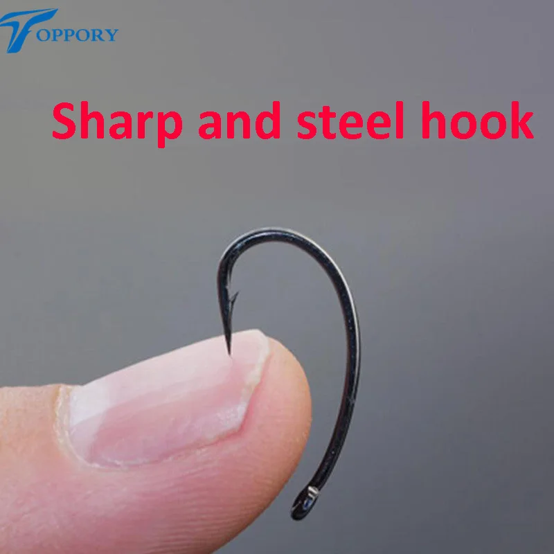 Toppory 10 unids/bolsa anzuelos de acero de alto carbono de alta calidad para pesca de carpa anzuelos rígidos fuertes de púas negras herramienta de aparejos de pesca de carpa