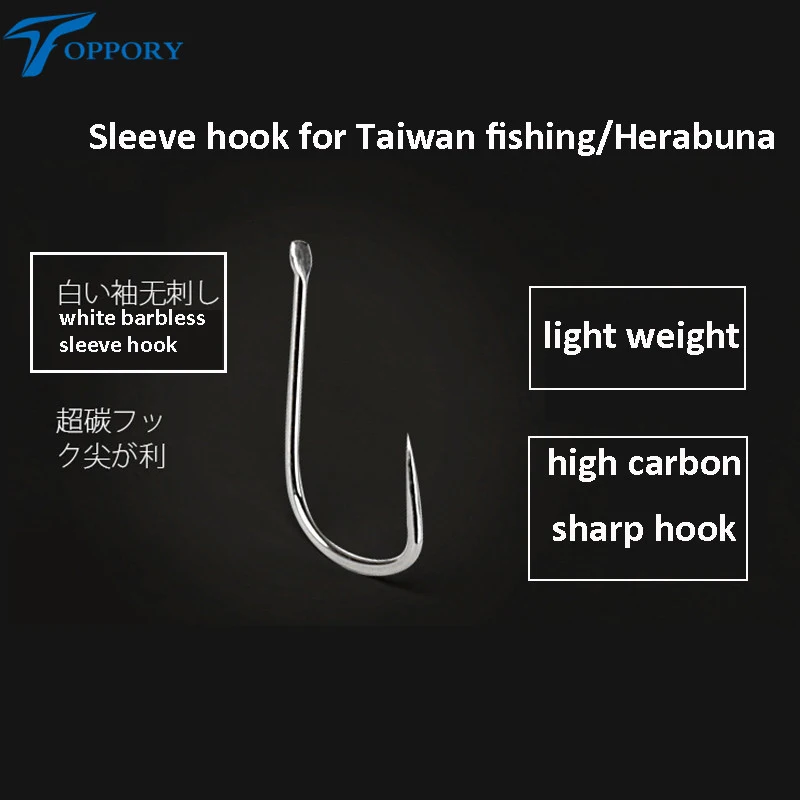 Toppory 20 unids/lote anzuelo de manga sin púas blanco para pesca Herabuna Taiwán pesca crucian anzuelos de acero sin púas de alto carbono