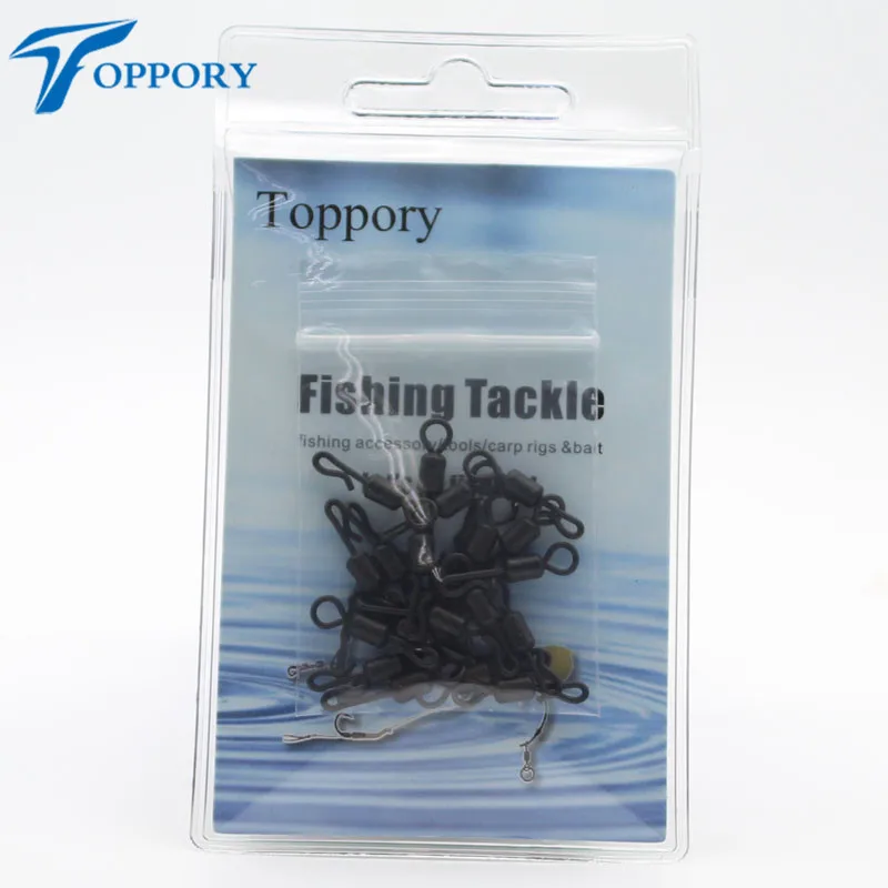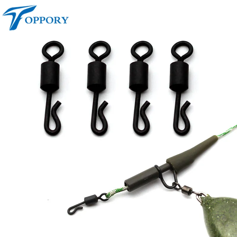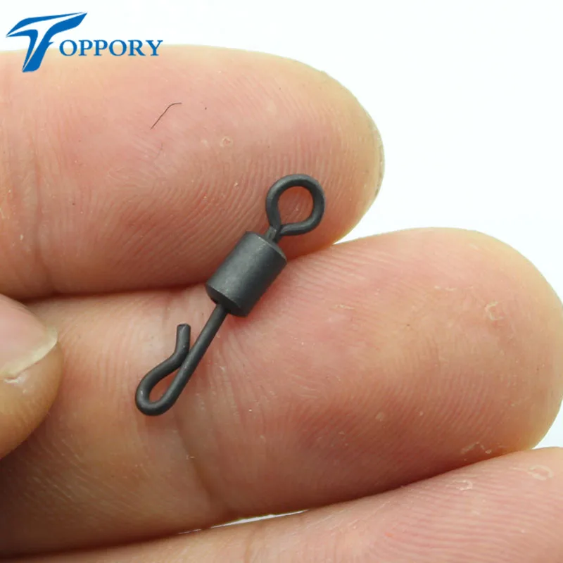 Toppory 30PS, aparejos de Terminal de pesca de carpa, cambio rápido, giratorios, tamaño 8, negro mate, antideslumbrante, Rodante, cuerpo largo, Kwik, Clip giratorio