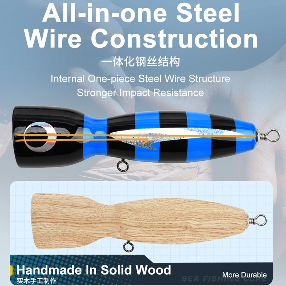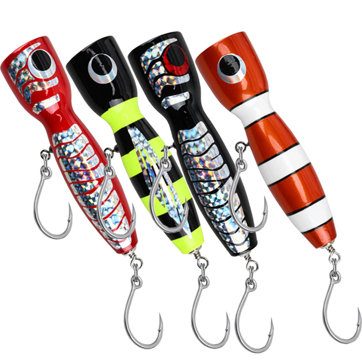 Topwater Big Popper Stickbait 19cm 120g señuelo de curricán de madera cebo de agua salada atún de aguas profundas Wahoo barco Señuelos de pesca aparejos