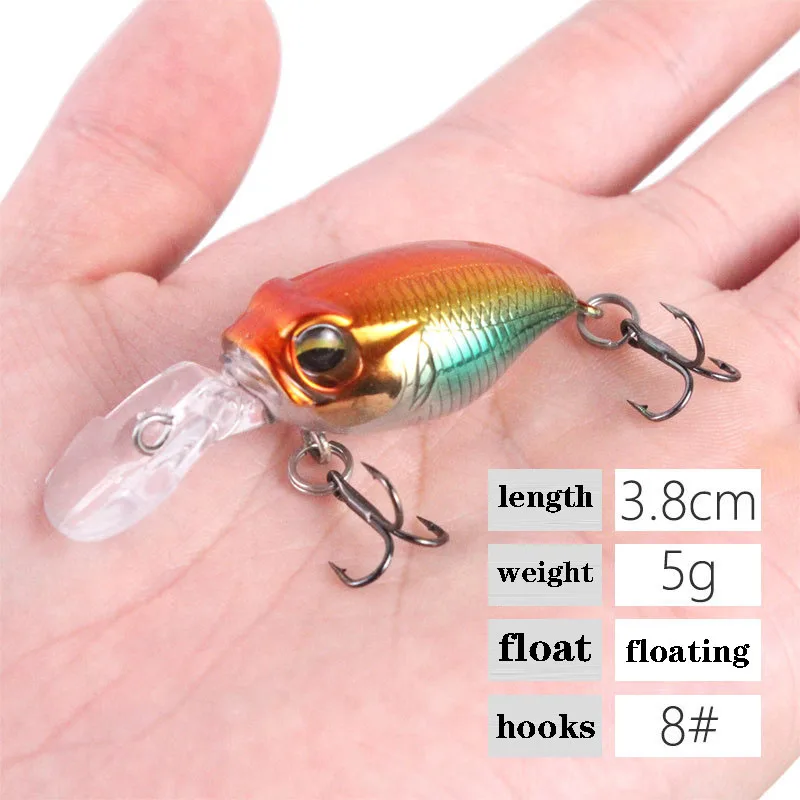 Topwater Mini señuelo de pesca Crankbait 5g 38mm flotante Wobbler cebo duro Artificial para Lucio Walleye Bass Swimbait Accesorios