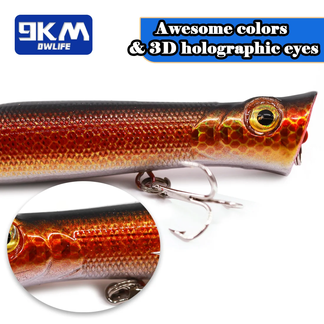【Amplio USO DE pescado】: el señuelo Popper cubre una variedad de aplicaciones en la costa y en alta mar. Lanzamiento de atún, tiburones y dorado desde el barco. Ampliamente dirigido a peces depredadores como lubina, perca amarilla, lucioperca, Lucio, muskies, cucarachas, truchas y más. Maravilloso cebo de pesca de agua salada para pescadores.