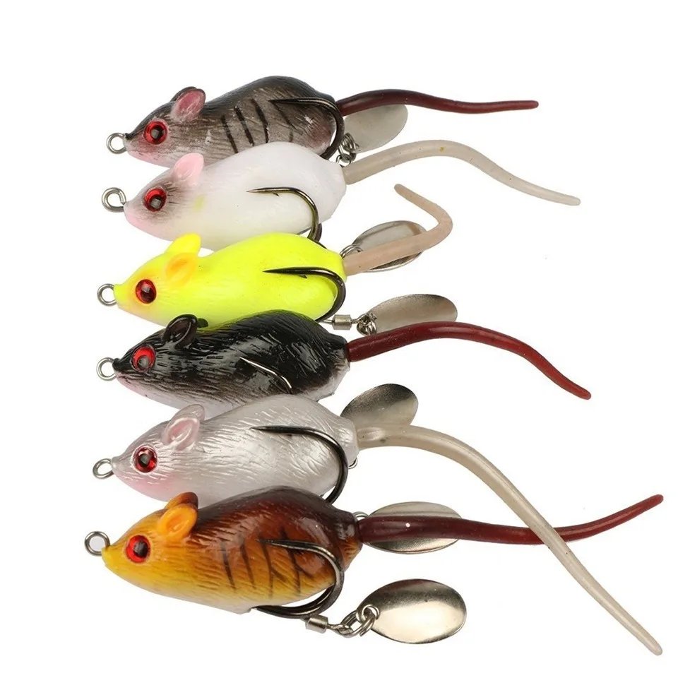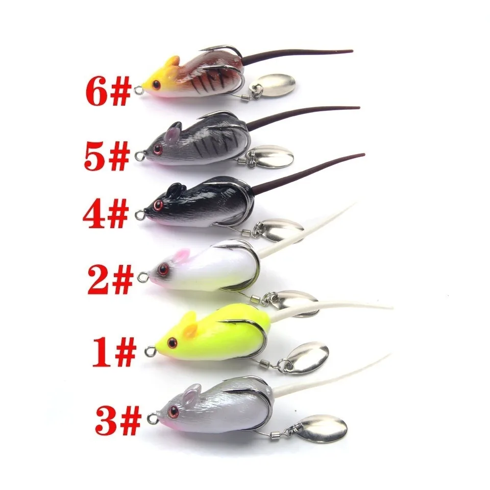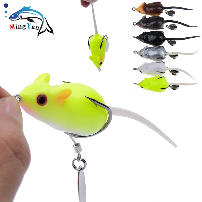 Detalles del producto: Marca: Mingyan Modelo de señuelo: señuelo de ratón Tipo de señuelo: señuelo de pesca suave Peso del señuelo: 5,5 cm Longitud del señuelo: 10,5g Profundidad de buceo: Topwater Anzuelos: anzuelos triples de acero de alto carbono para natación Ojos: ojos de pez 3D Material: ABS Colores: 6 colores