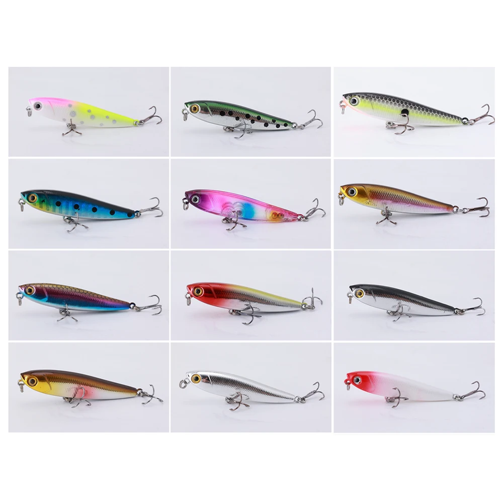 Topwater-Señuelos de Pesca de 60mm y 3,3g, aparejos de Pesca de lubina, señuelos de carpa, cebo de agua salada, Isca Artificial