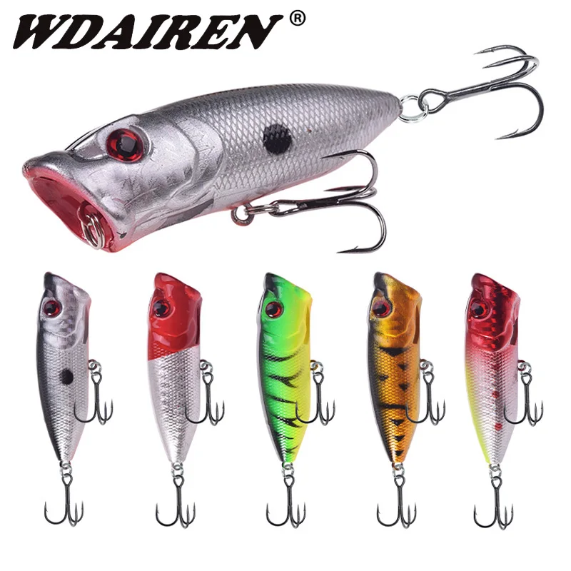 Señuelos de pesca Topwater Popper 7cm 12g cebo Artificial 5 colores cebos duros Wobblers aparejos de pesca de plástico con 6 # anzuelos triples