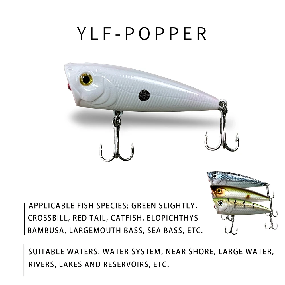 Topwater-Señuelos de Pesca Popper, cebo duro de 6cm y 5,8g, trucha, lubina, Wobblers artificiales, señuelo de plástico, aparejos de pesca con anzuelos, novedad