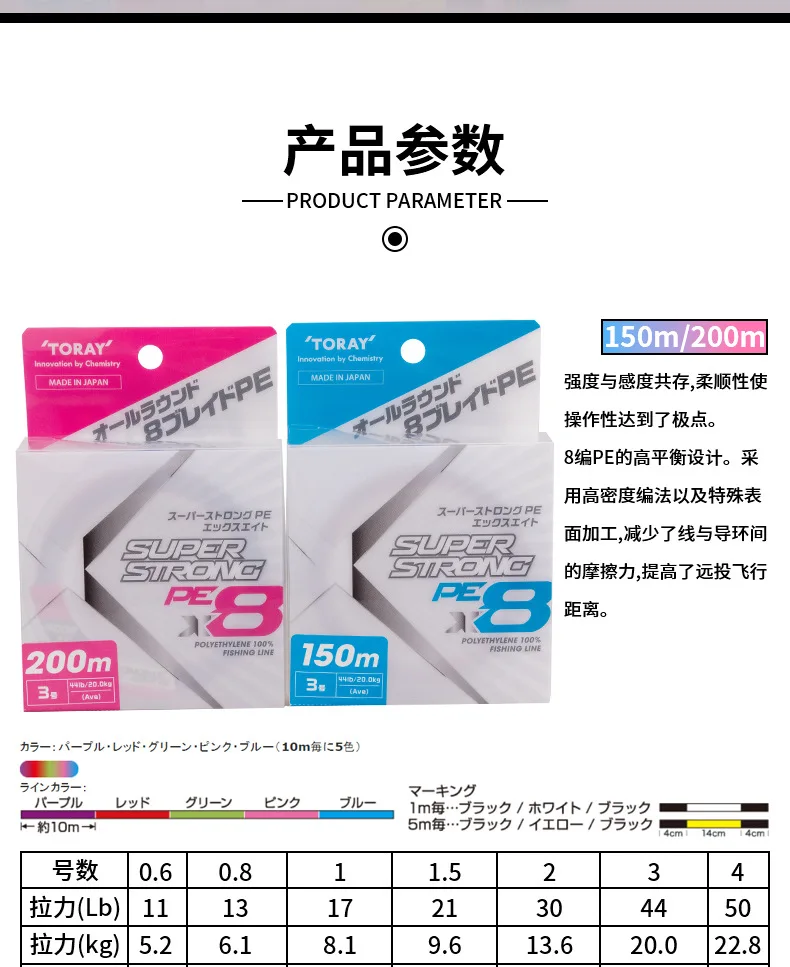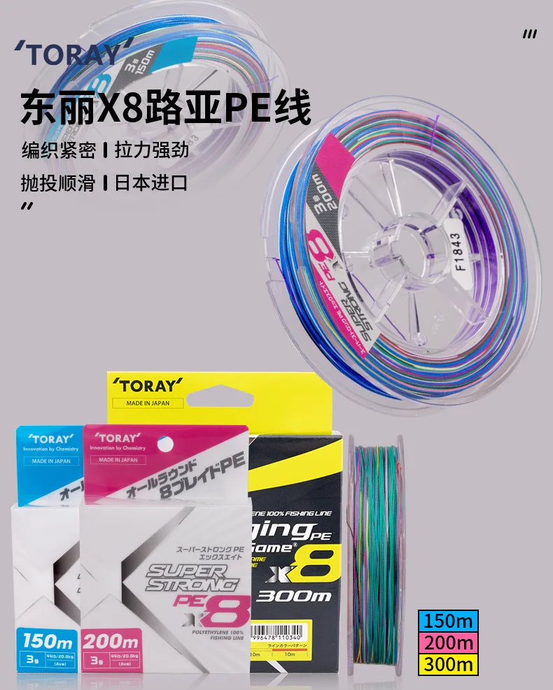 TORAY-sedal de pesca japonés X8 8, Original, superfuerte, 2024 m/150m/200m, 13LB-80LB, 300